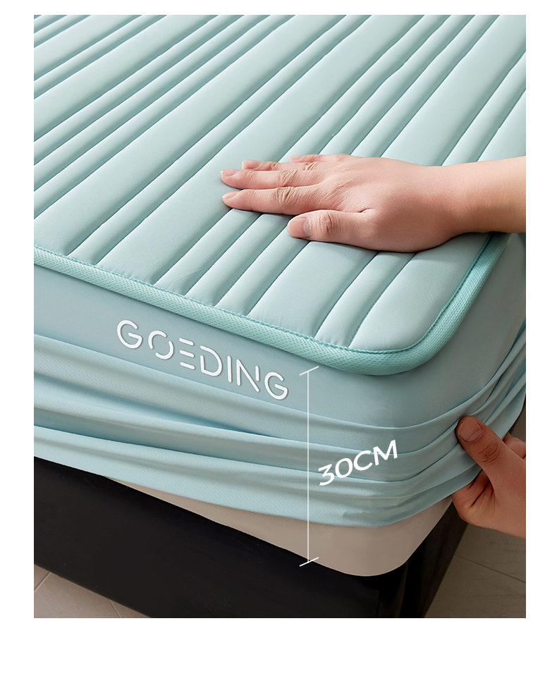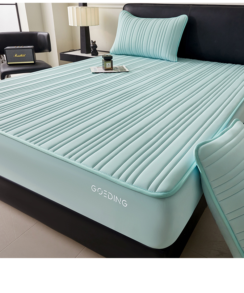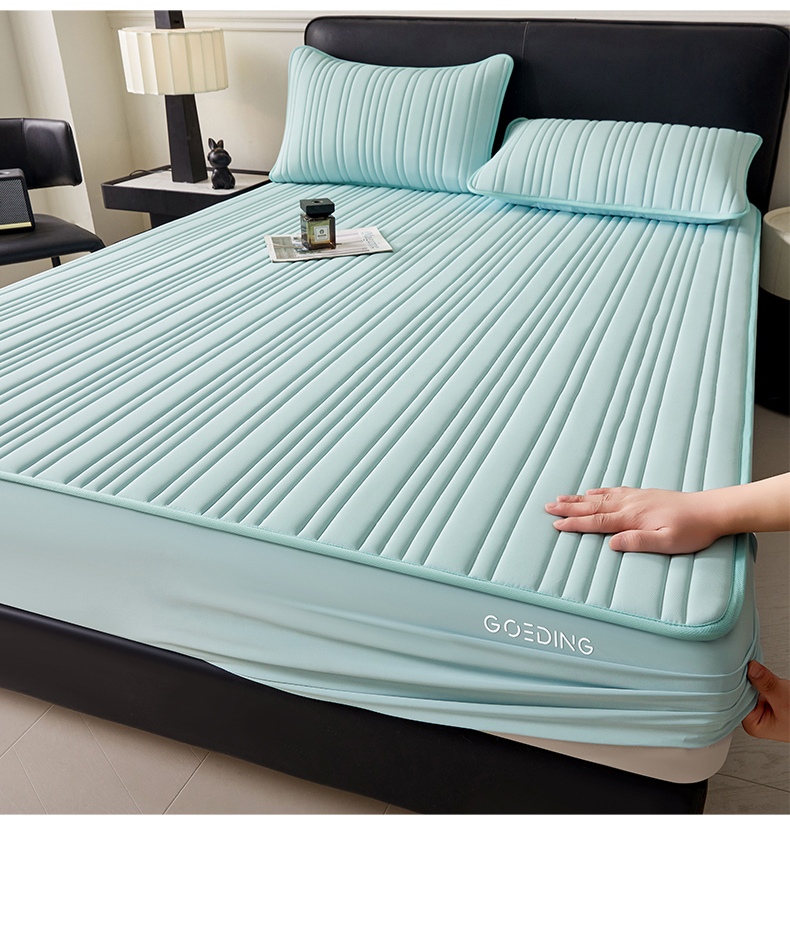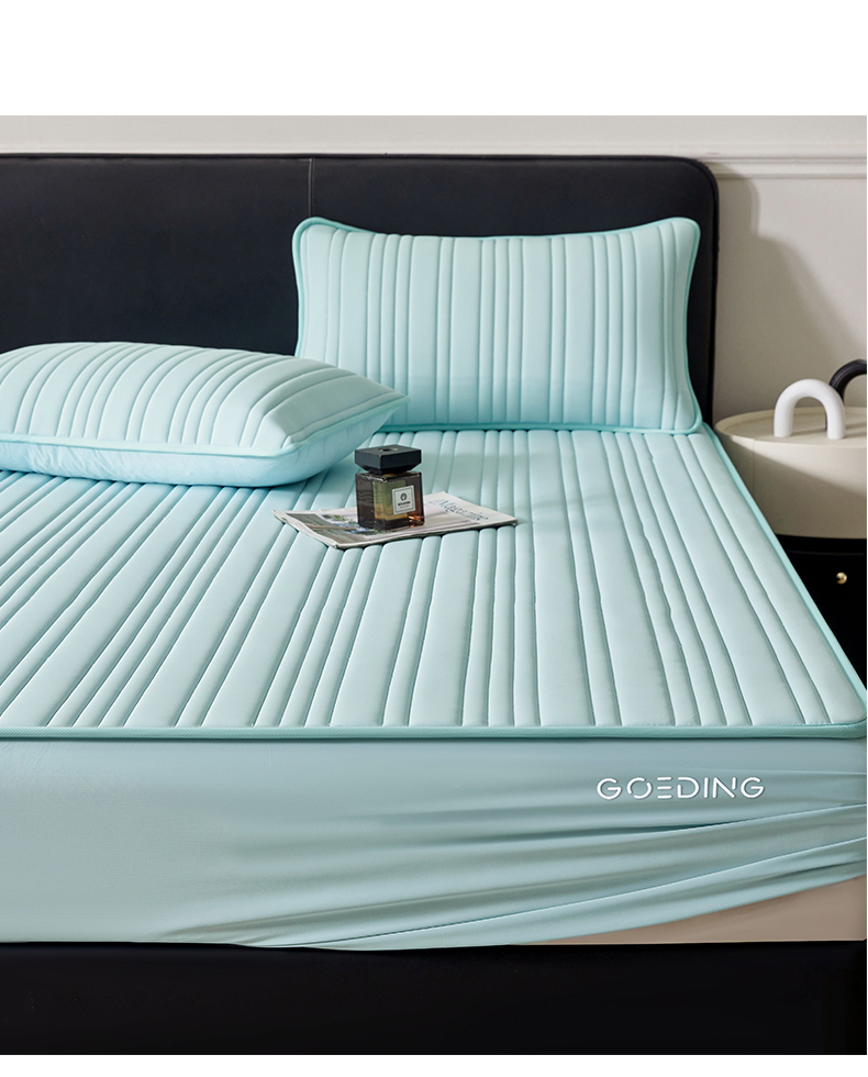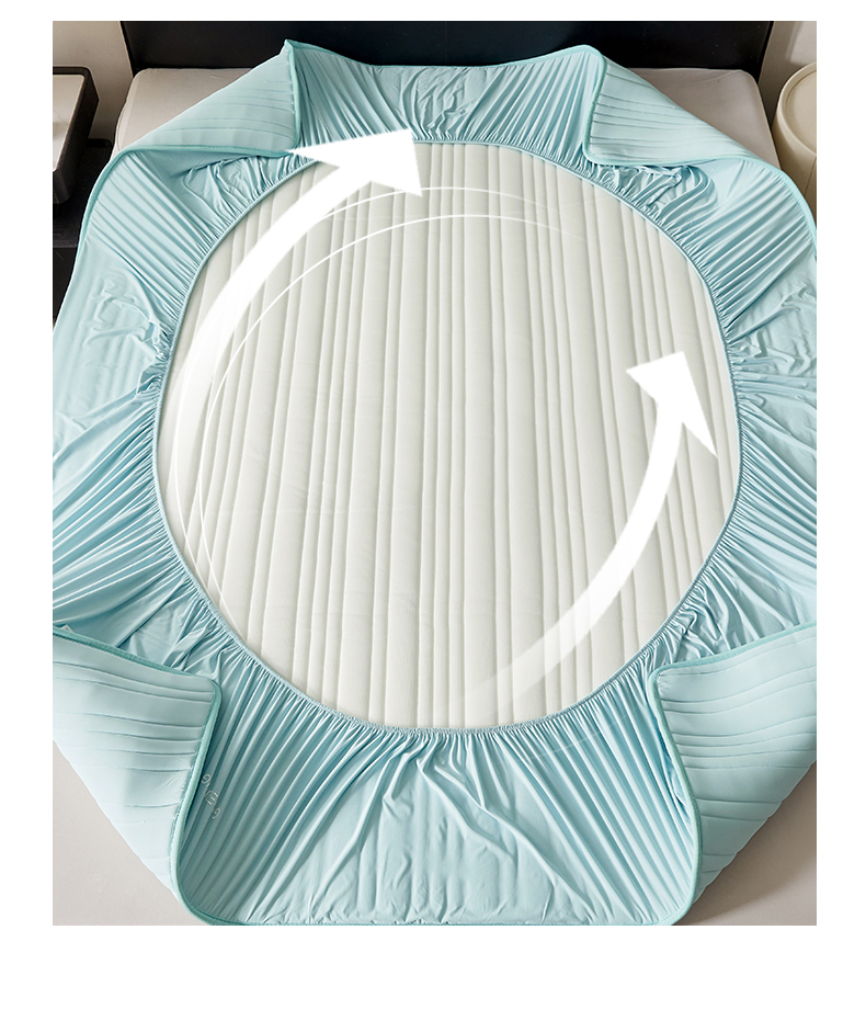 • 91家纺网 家纺一手货源 找家纺 雯豆家纺 2026春夏新品氨纶凉感床笠夹棉款床笠三件套床垫保护套 知夏-水绿