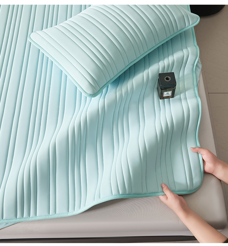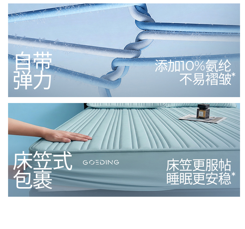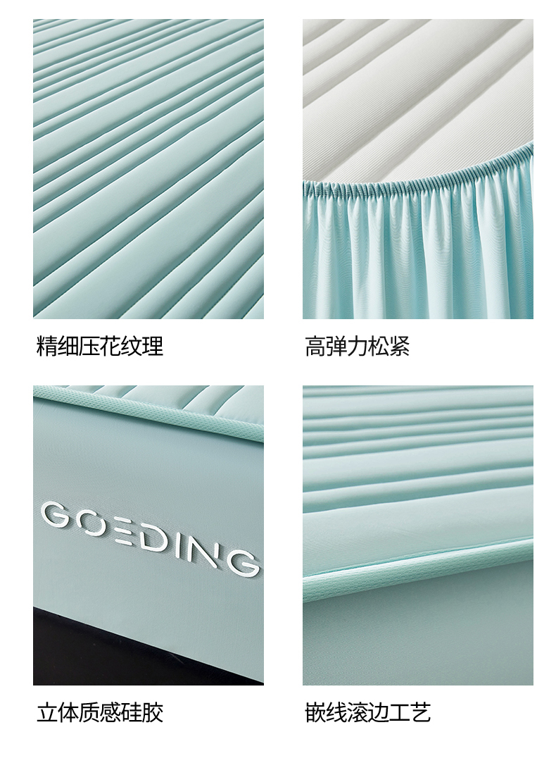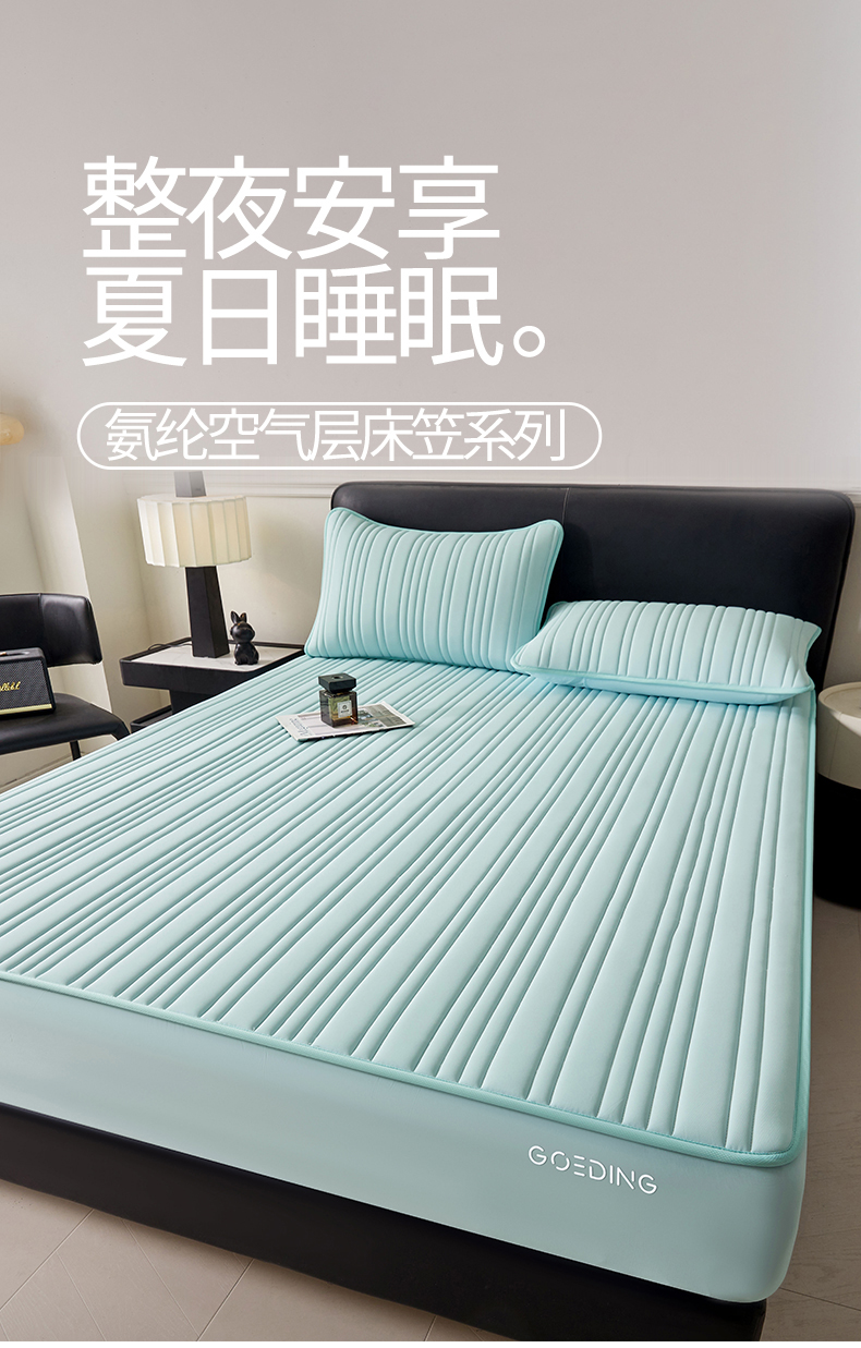 • 91家纺网 家纺一手货源 找家纺 雯豆家纺 2026春夏新品氨纶凉感床笠夹棉款床笠三件套床垫保护套 知夏-水绿