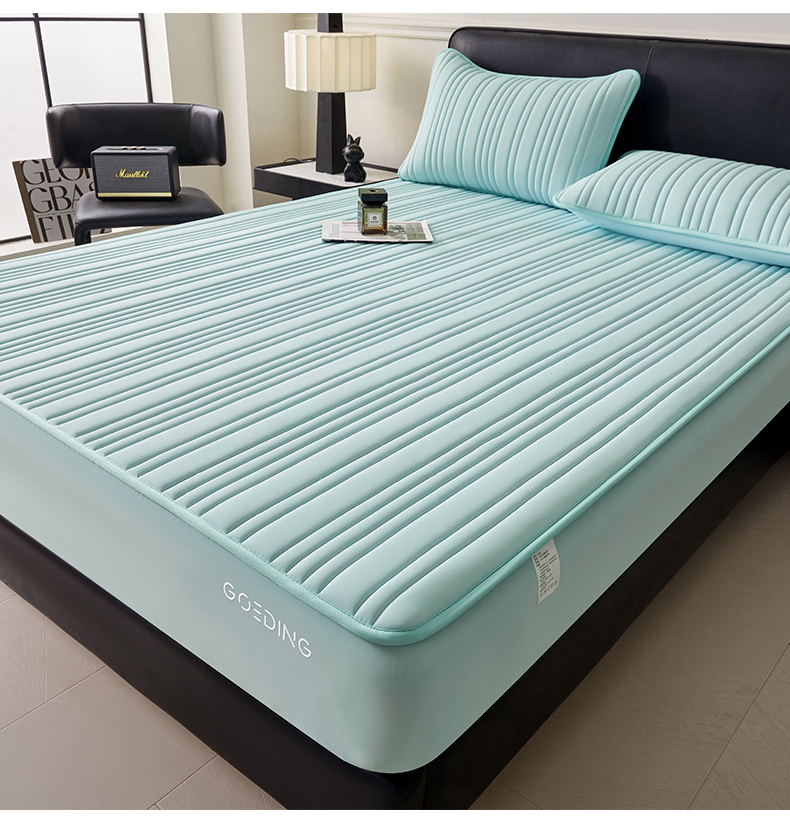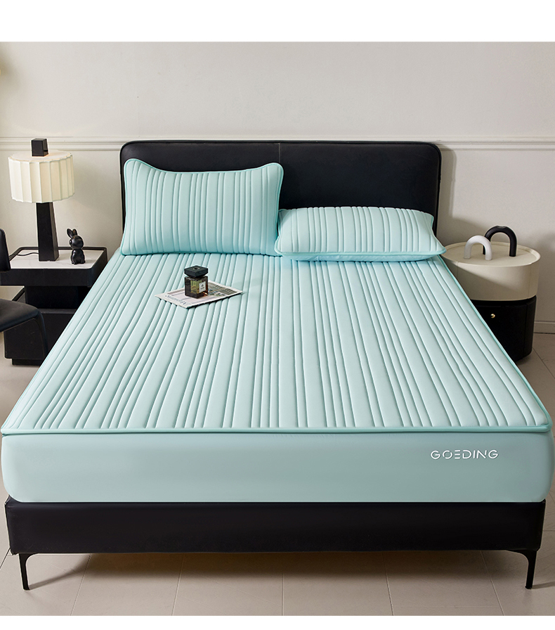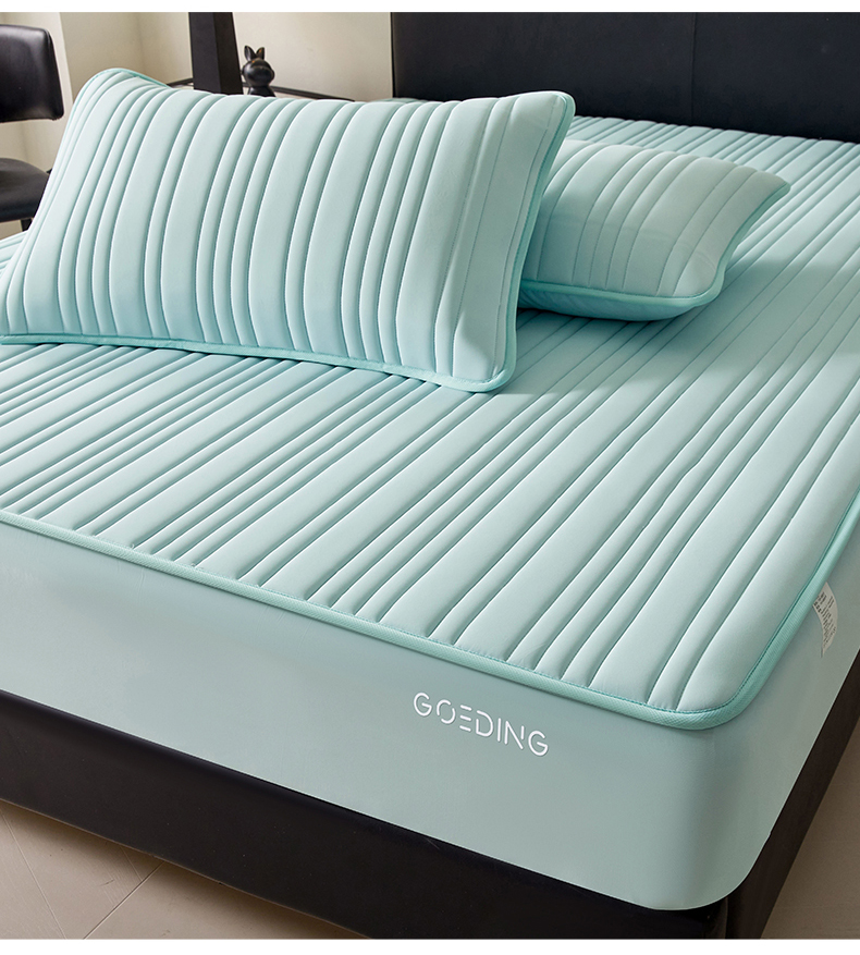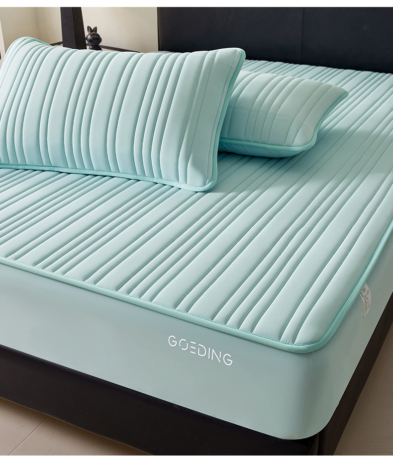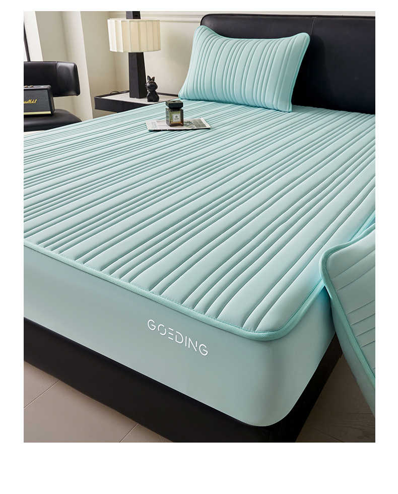 雯豆家纺 2026春夏新品氨纶凉感床笠夹棉款床笠三件套床垫保护套 知夏-水绿