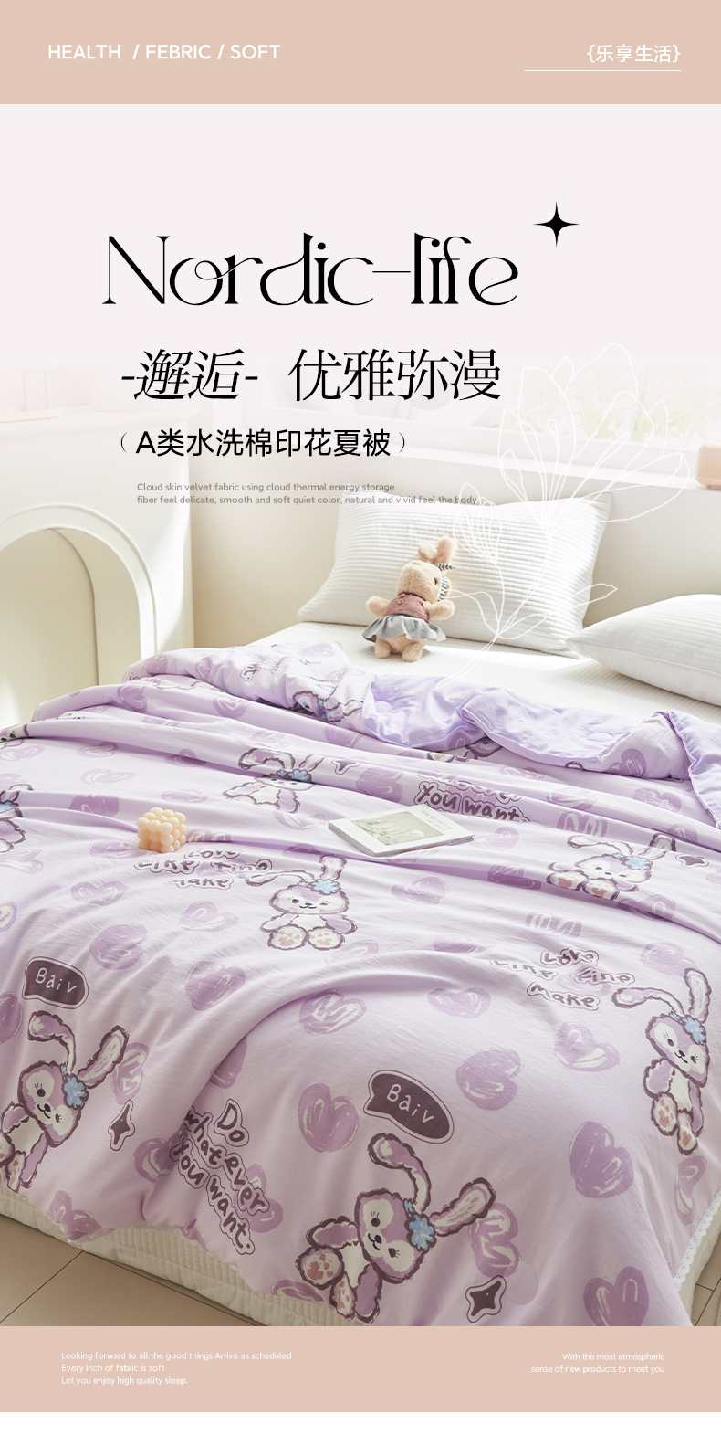 畅销被业 2026新款A类水洗棉印花夏被空调被夏凉被 星星兔