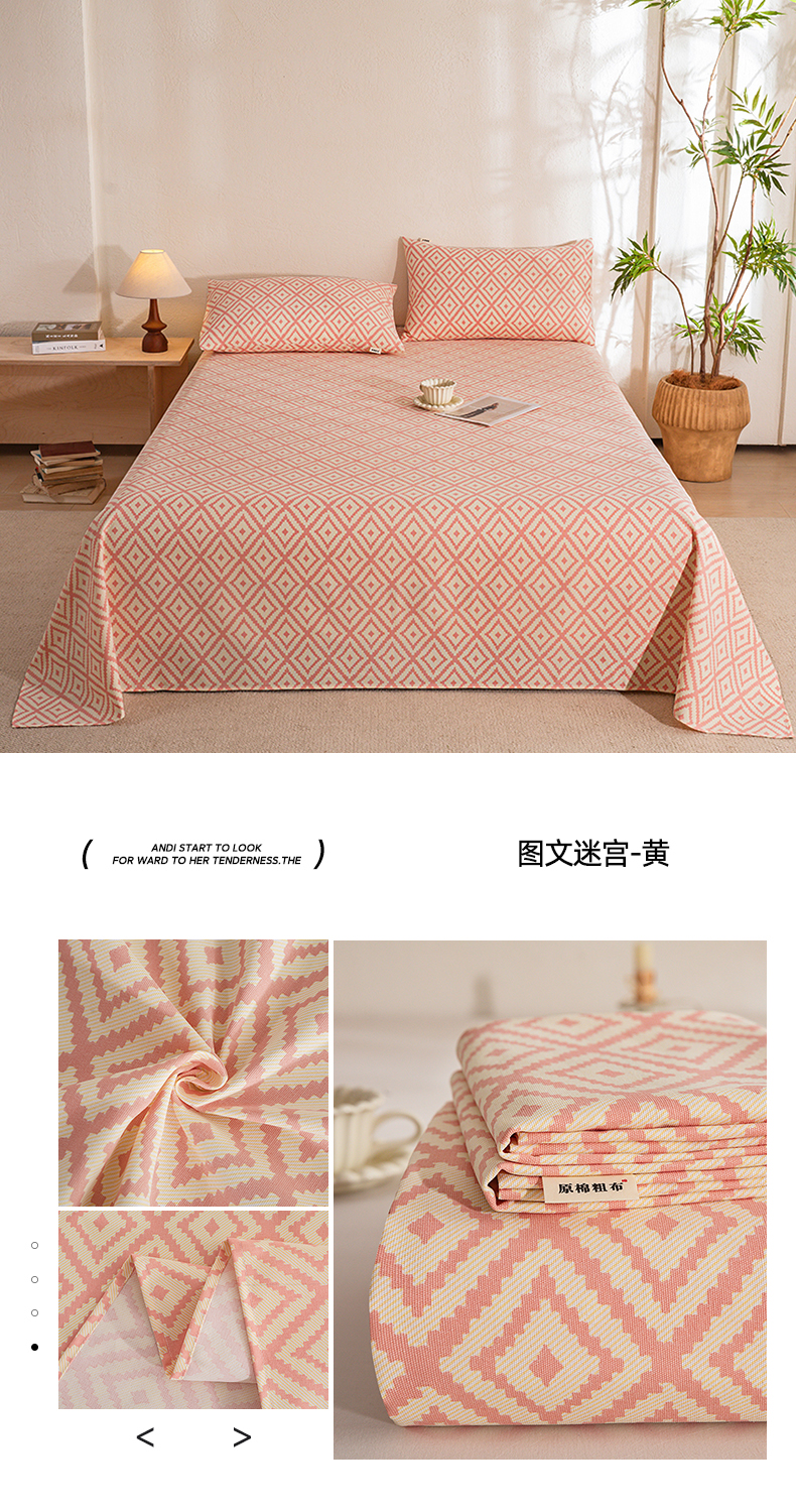 当前位置: 91家纺网 > 商品网购 > 床品套件 > 三件套 > 博弈家纺 2026新款亲肤舒适原棉老粗布床单凉席三件套系列 图文迷宫-黄