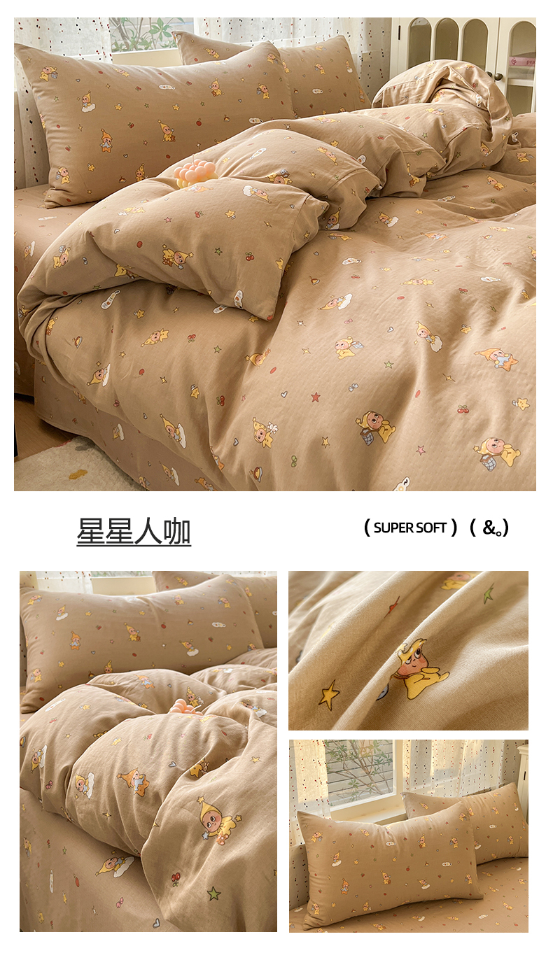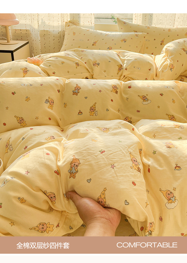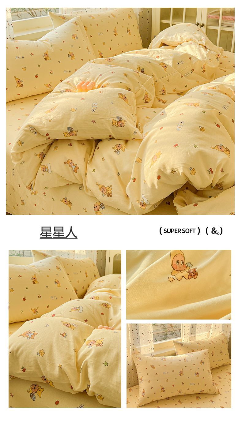 当前位置: 91家纺网 > 商品网购 > 床品套件 > 四件套 > 全棉普通四件套 > 感遇家纺 2026新款A类全棉有氧双层纱卡通四件套 星星人