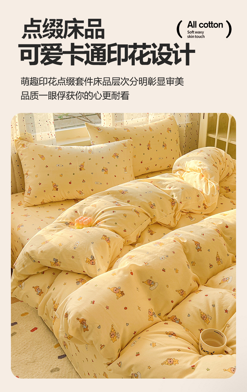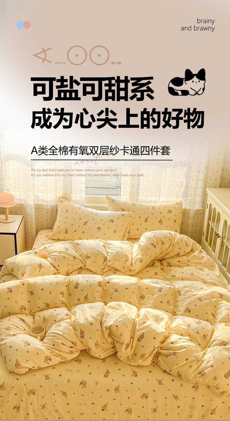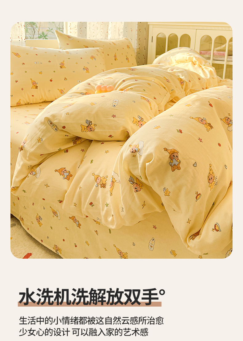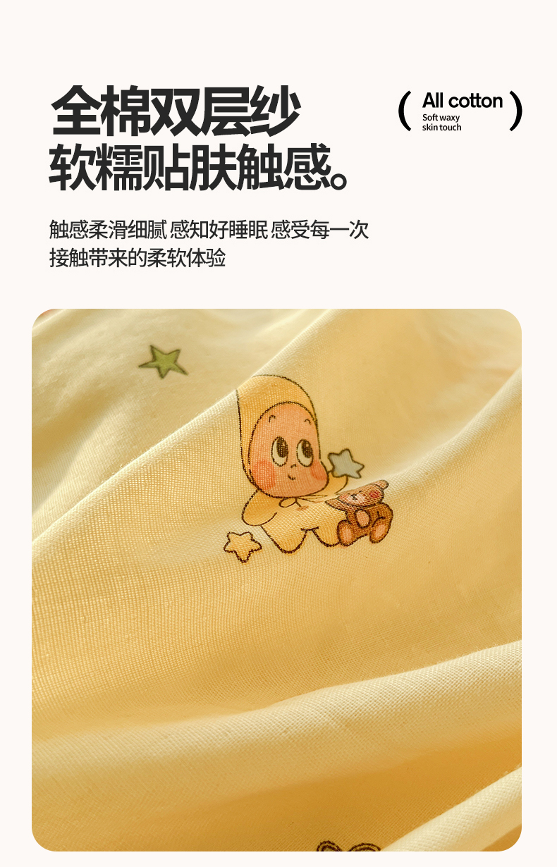 当前位置: 91家纺网 > 商品网购 > 床品套件 > 四件套 > 全棉普通四件套 > 感遇家纺 2026新款A类全棉有氧双层纱卡通四件套 星星人