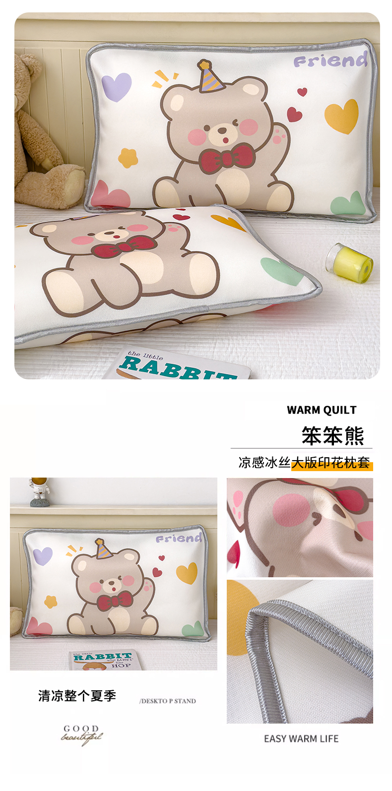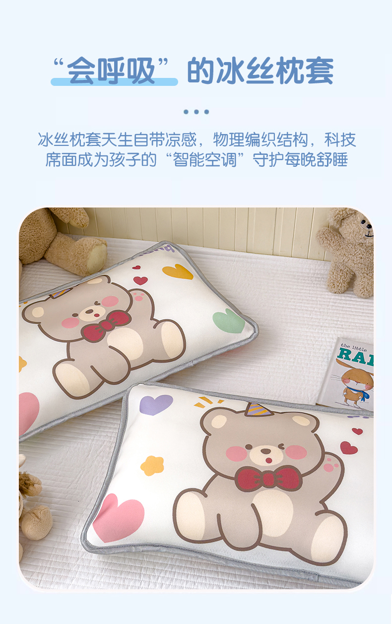 丽美人家纺 2026新款柔软亲肤儿童冰丝枕套 笨笨熊