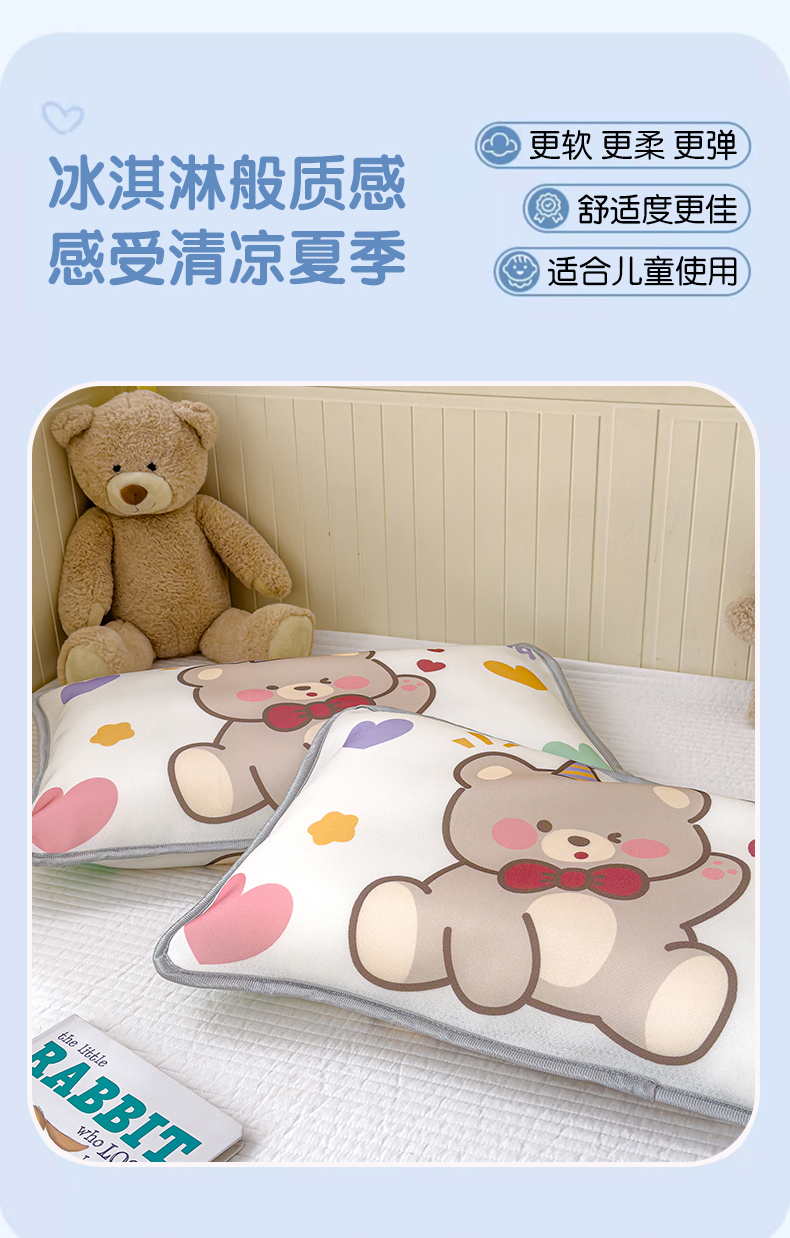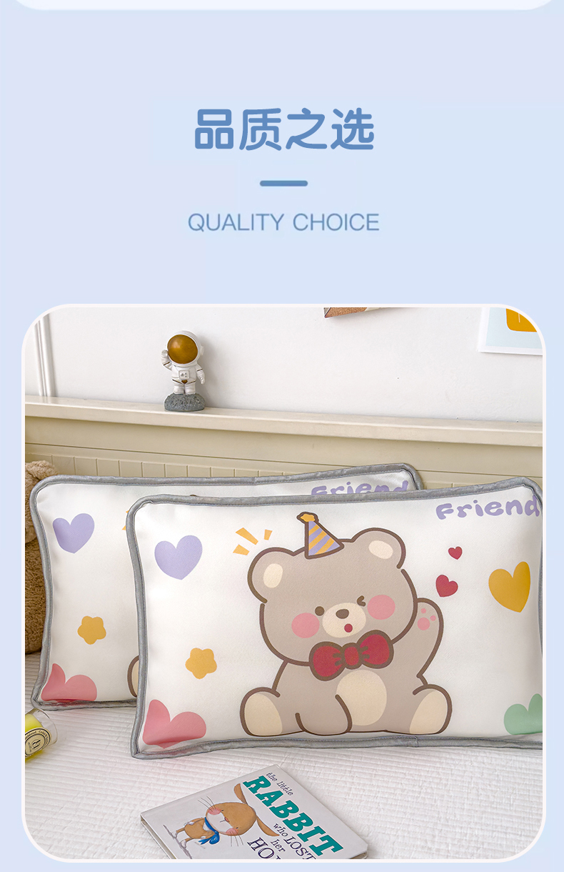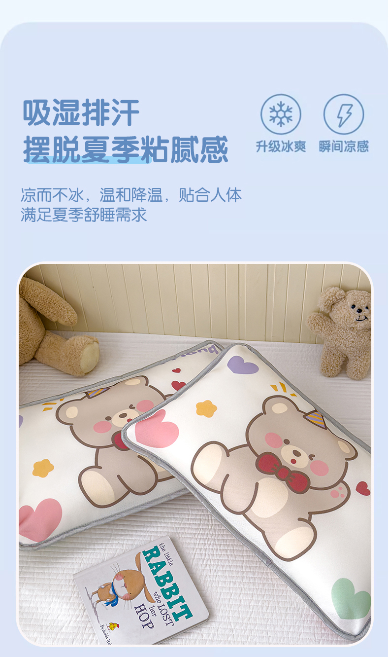• 91家纺网 家纺一手货源 找家纺 丽美人家纺 2026新款柔软亲肤儿童冰丝枕套 笨笨熊