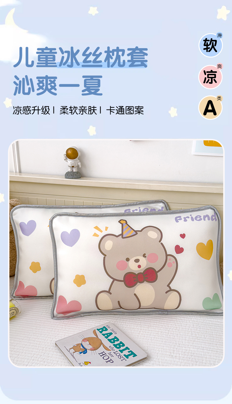 (总)丽美人家纺 2026新款柔软亲肤儿童冰丝枕套,爱心恐龙,安逸熊猫,斑点狗,笨笨熊,馋嘴兔,发财马,好运熊,呼呼熊,加油鸭,可爱兔,可可熊,恐龙屋,快乐汪,煤球宝贝,梦想家,软眠兔,生日猫,生日熊,听歌小团子,幸运星,鱼恋猫,宇航员,芝士星,puppy狗
