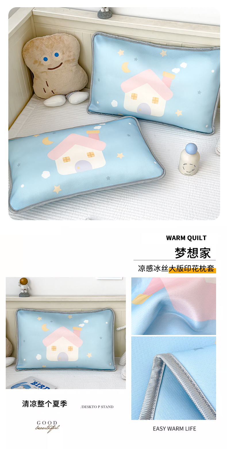 • 91家纺网 家纺一手货源 找家纺 丽美人家纺 2026新款柔软亲肤儿童冰丝枕套 梦想家