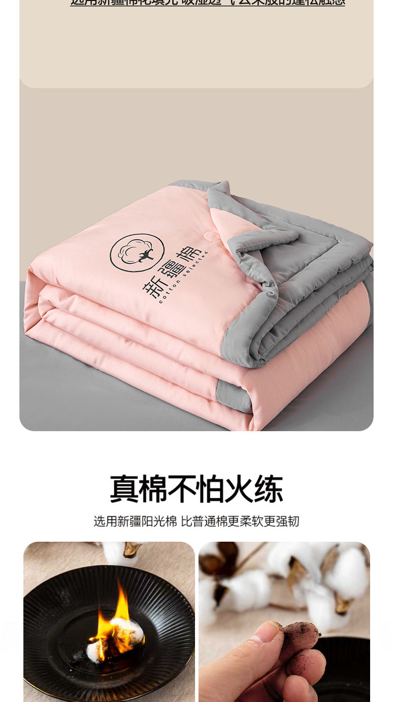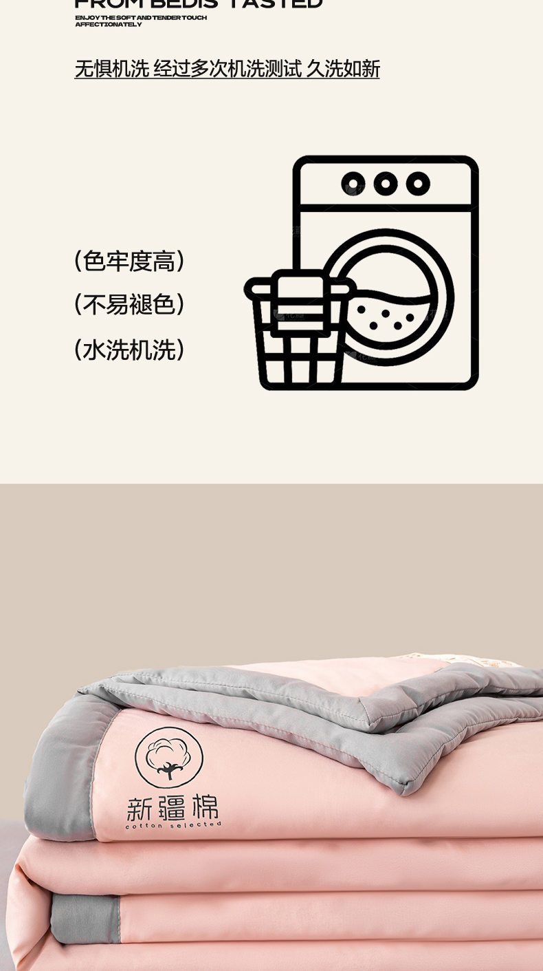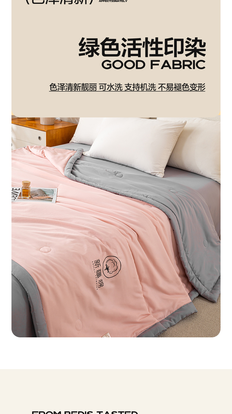 憨豆家纺 2026春夏新款 水洗棉纯色双拼棉花被夏凉被空调被(常年有货款) 棉朵-蔷薇灰
