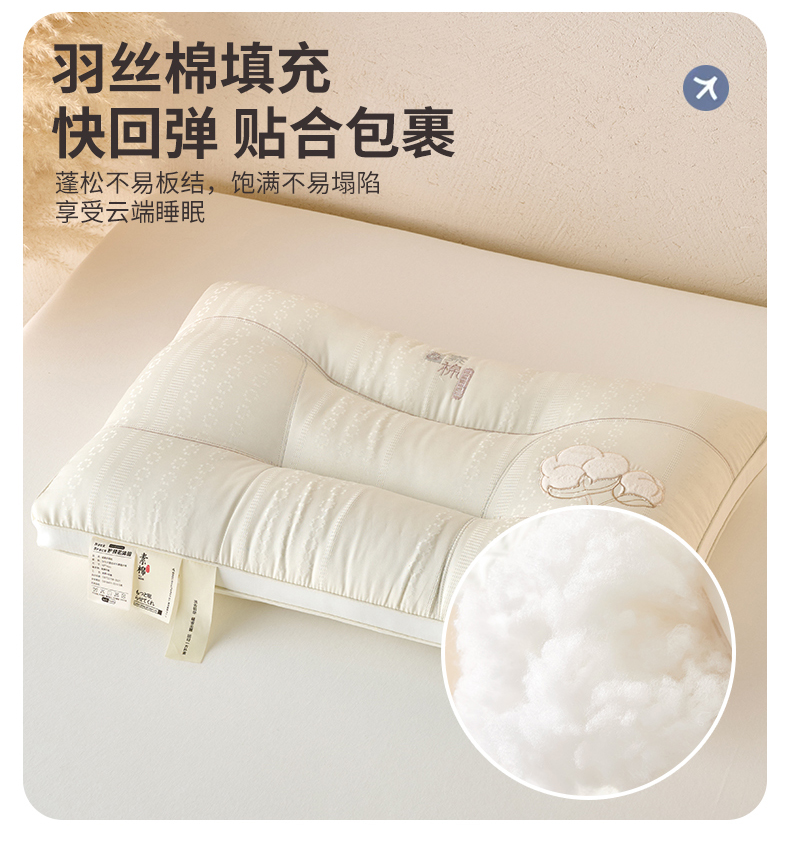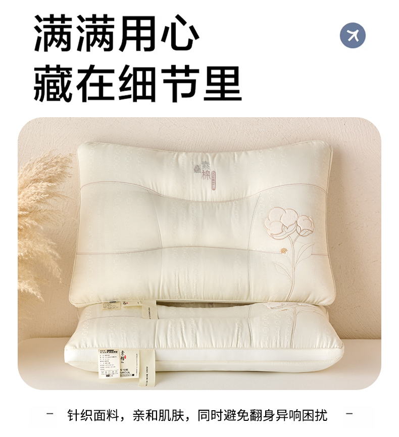 (总)鼎晟纺 2026新款全棉奶芙喵喵安睡舒适枕学生枕头成人枕芯,全棉A+喵喵舒适枕单边款,全棉A+喵喵舒适枕双边款