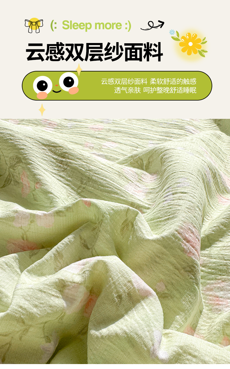 • 91家纺网 家纺一手货源 找家纺 晓时候 2026新款双层纱印花夏被床盖四件套新疆棉花被夏凉被空调被单夏被 芊芊花语