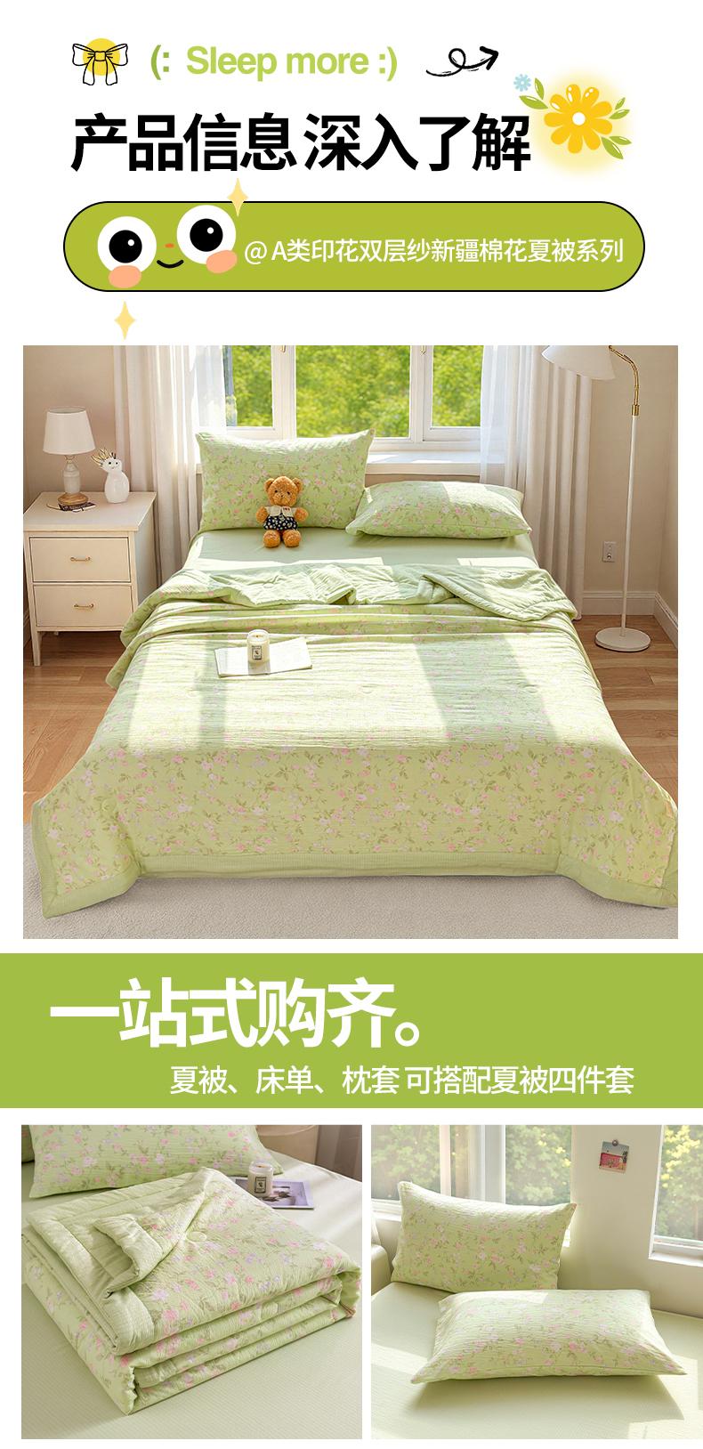 1.5夏被+200*230cm床盖+枕套2只