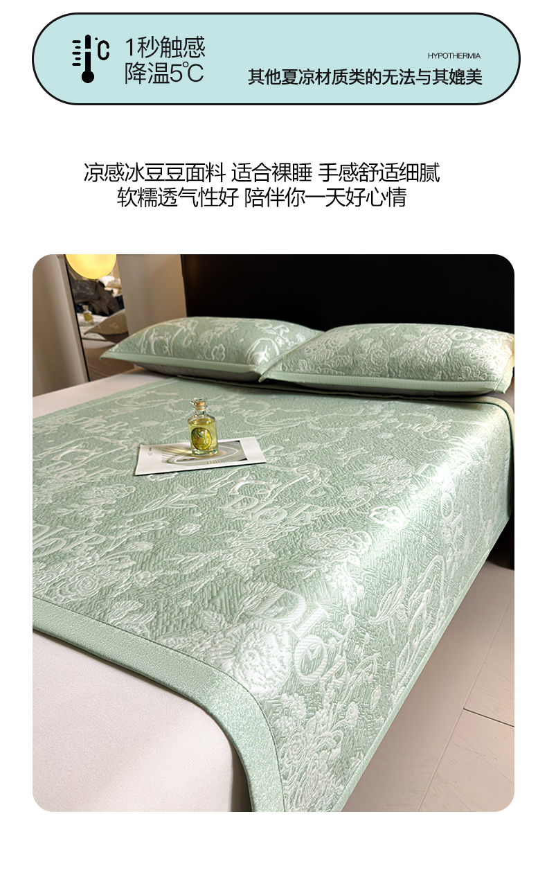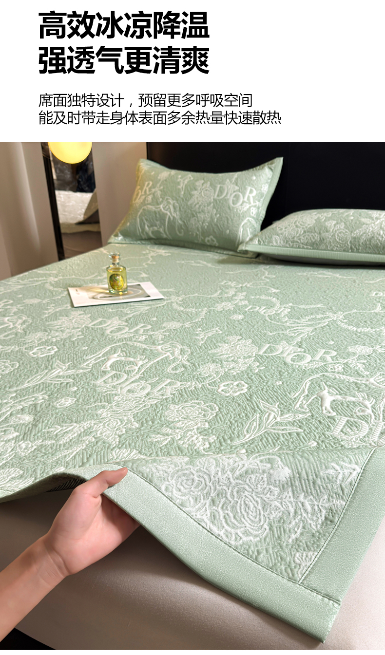 当前位置: 91家纺网 > 商品网购 > 床上用品 > 凉席 > 凉席套件 > 慕木家纺 2026新品高端复合三明治PE乙纶双面提花610克冰豆豆凉席迪奥风系列(提供买家秀) 床席款迪奥风-绿