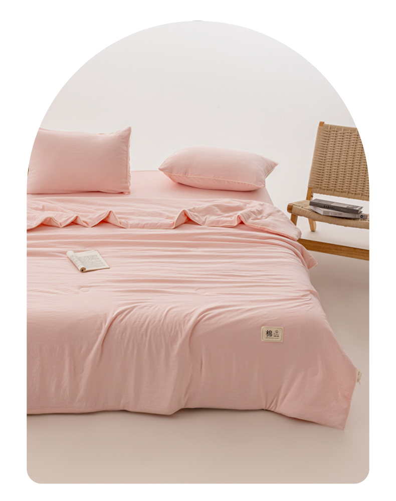 迪梵家纺 2026新款A类无印风水洗棉格子纯色夏凉被大豆夏被空调被薄被(带买家秀) 奶油粉