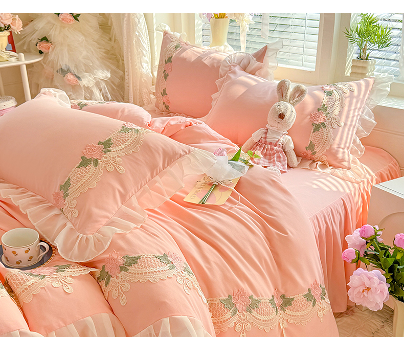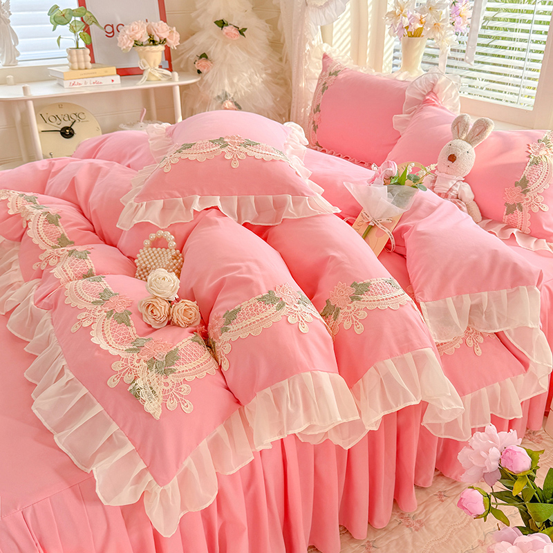 当前位置: 91家纺网 > 商品网购 > 床品套件 > 四件套 > 其它四件套 > 后庭寝室 2026新款水溶花边床裙四件套-爱恋系列 爱恋-蓝