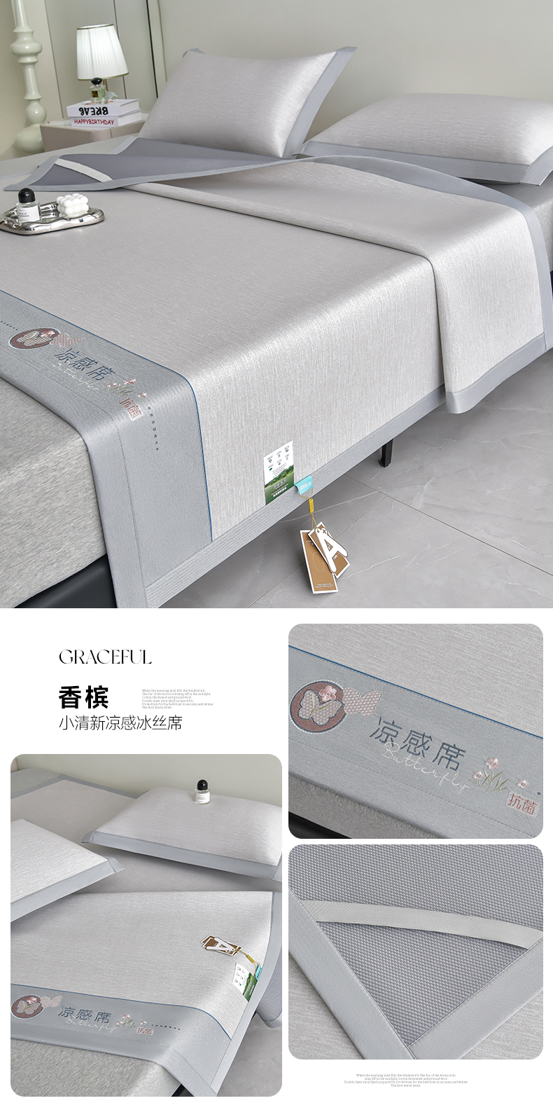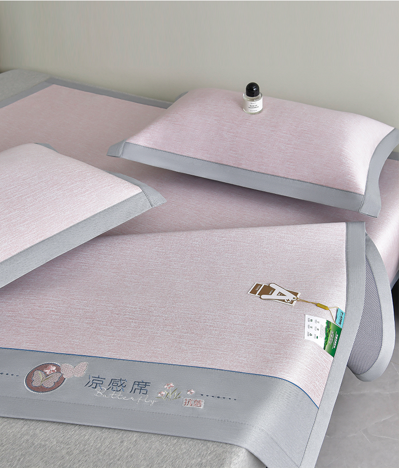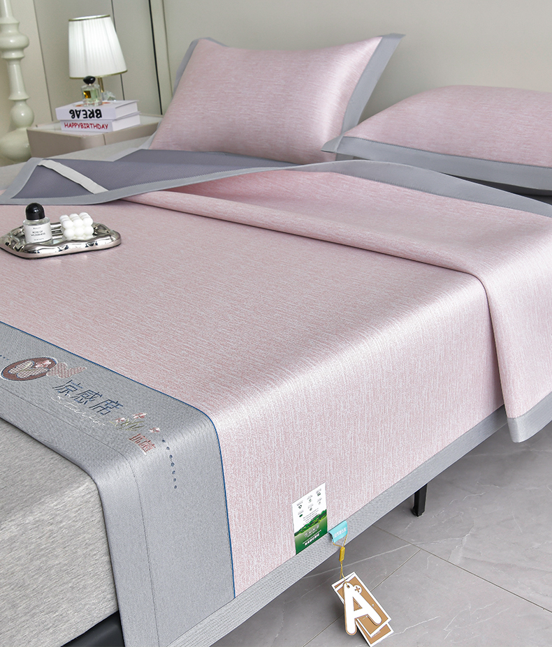 (总)小牛席业 2026新款小清新凉感冰丝席席子凉席,粉色,灰色,蓝色,香槟