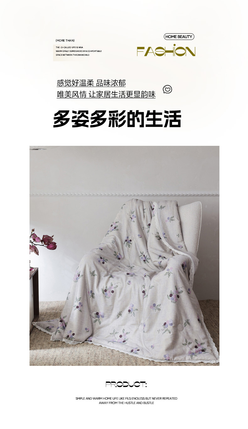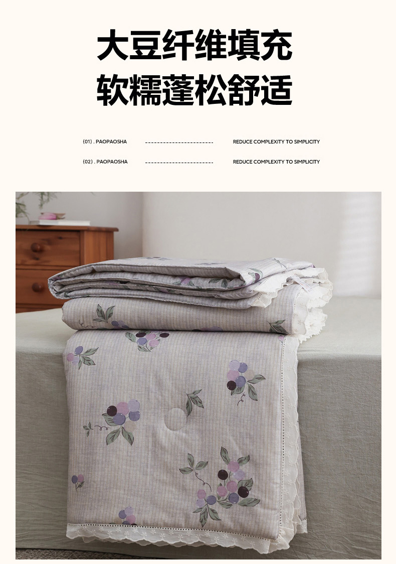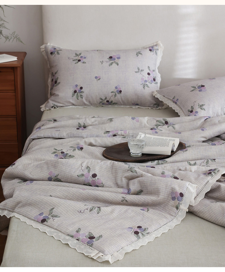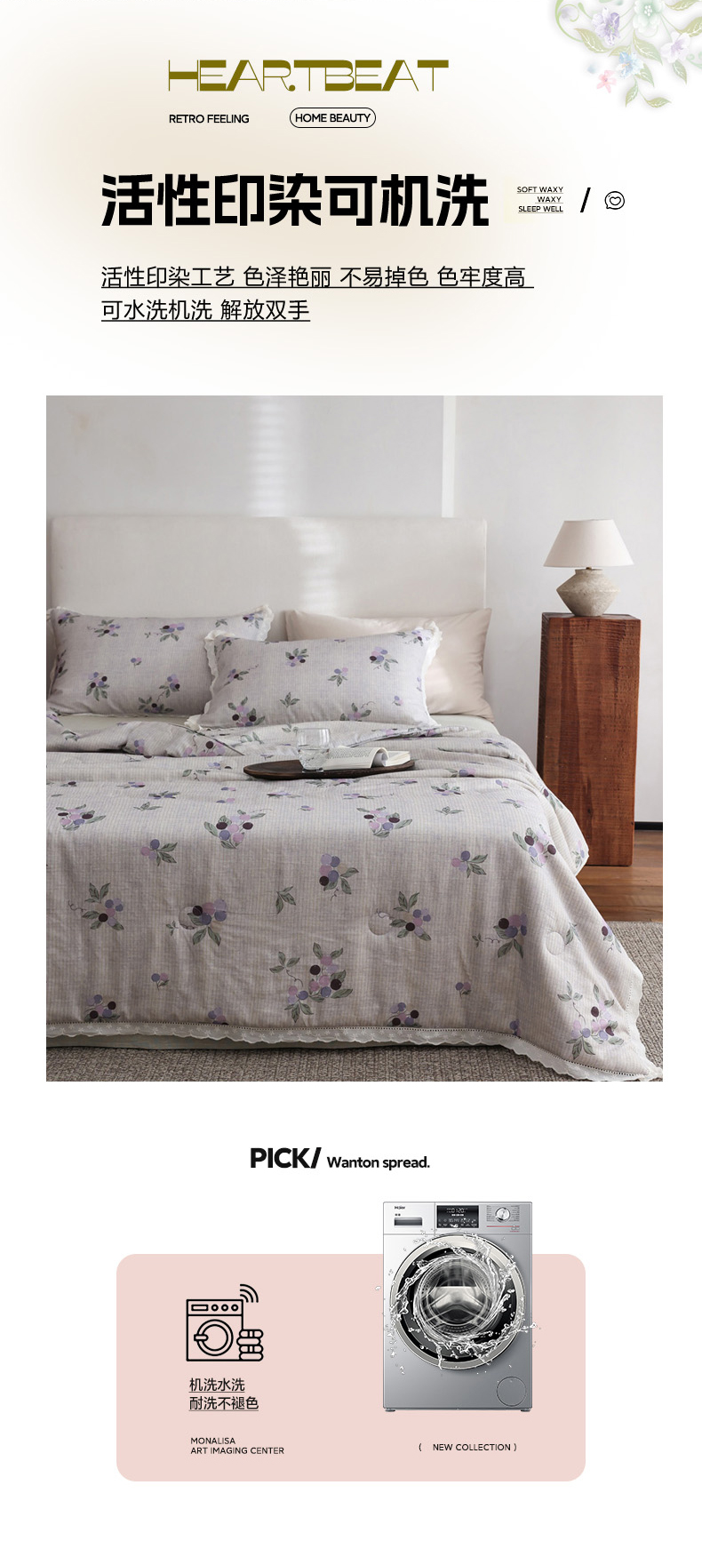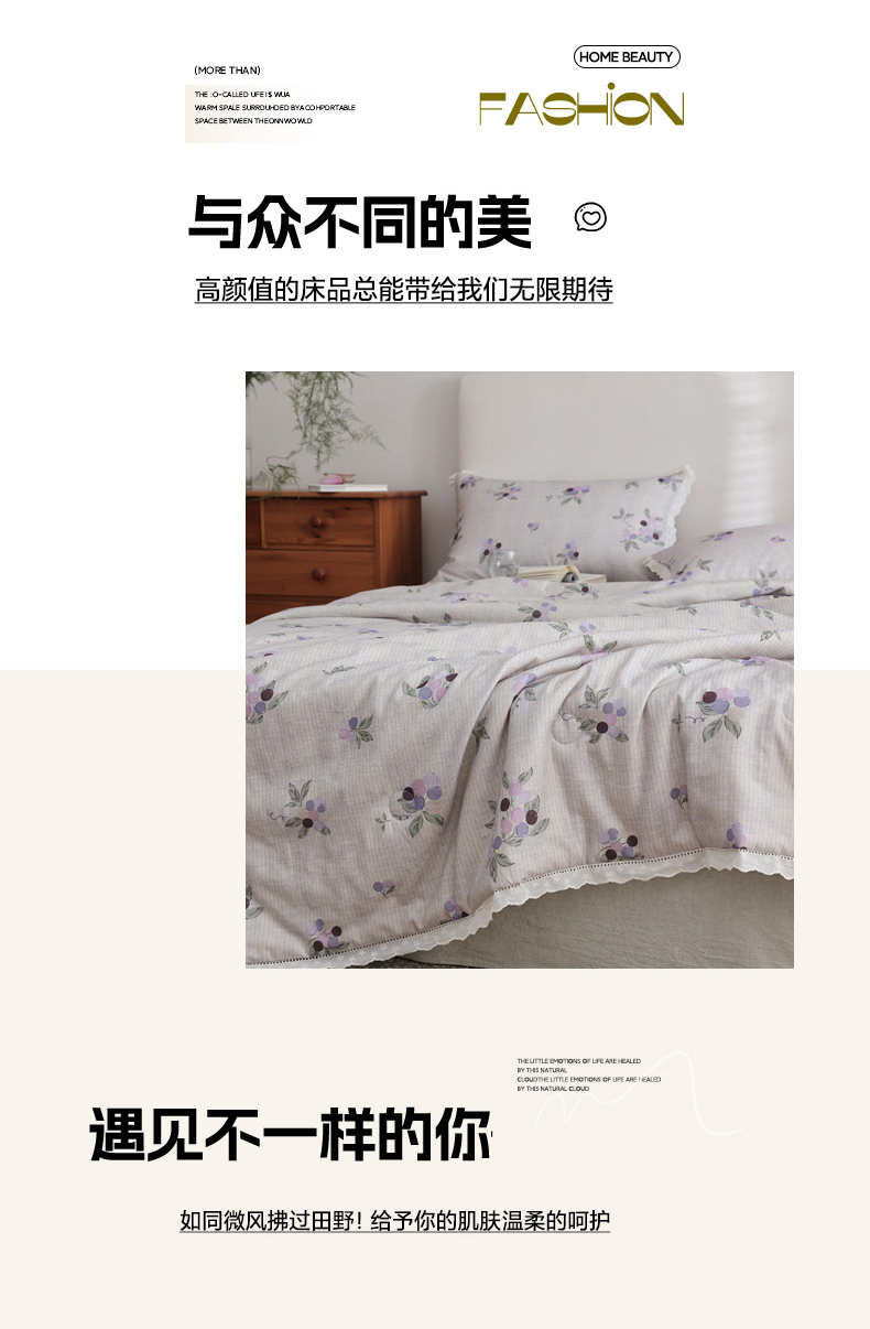 商品名称:万盛家纺 2026新款全棉双层纱花边印花夏被空调被夏凉被 铃兰