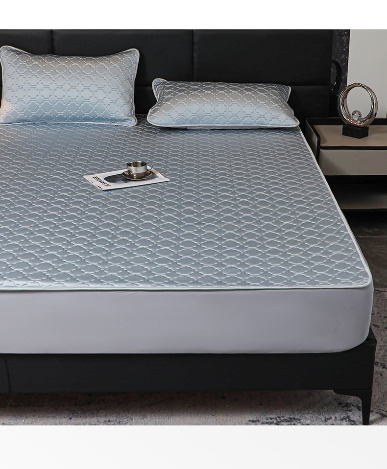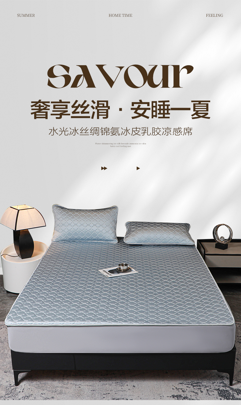 商品名称:多乐家纺 2026新款水光冰丝绸锦氨冰皮加厚乳胶凉席席子 香槟金-床笠款