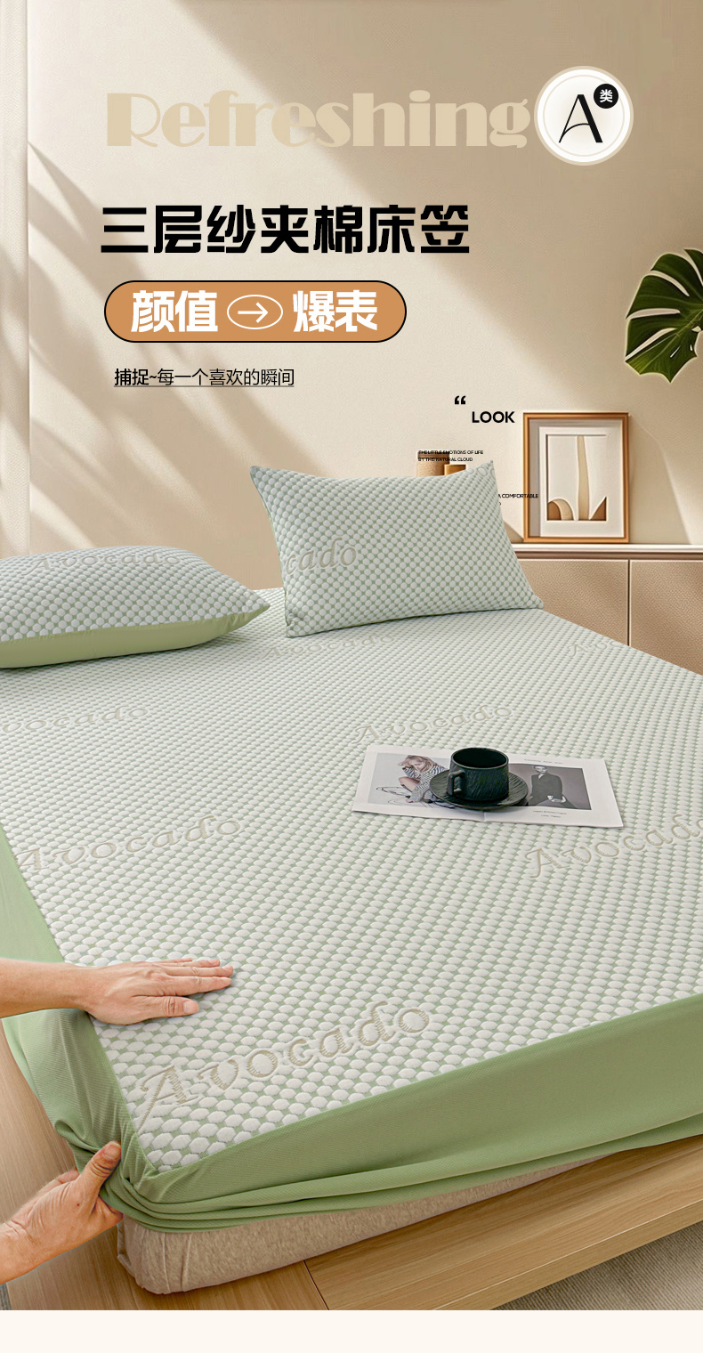 商品名称:(总)馨乐家纺 2026新款A类三层纱夹棉床笠(特殊尺寸 量大可定制)