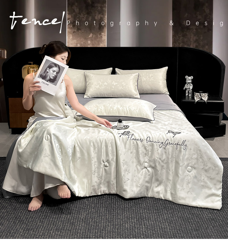 (总)慕澄家纺 2026新款水洗真丝天丝提花刺绣夏凉被空调被夏被四件套-蝶影