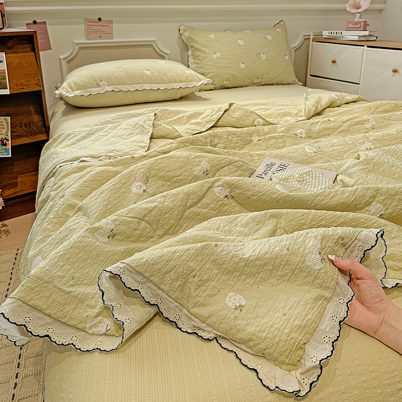 商品名称:一比一家纺 2026新款法式花边泡芙纱夏被四件套 青梅酱