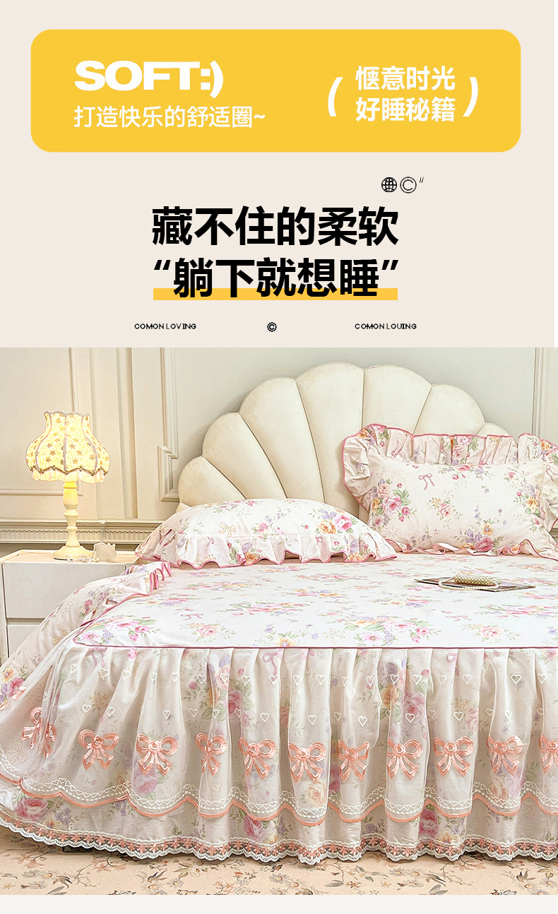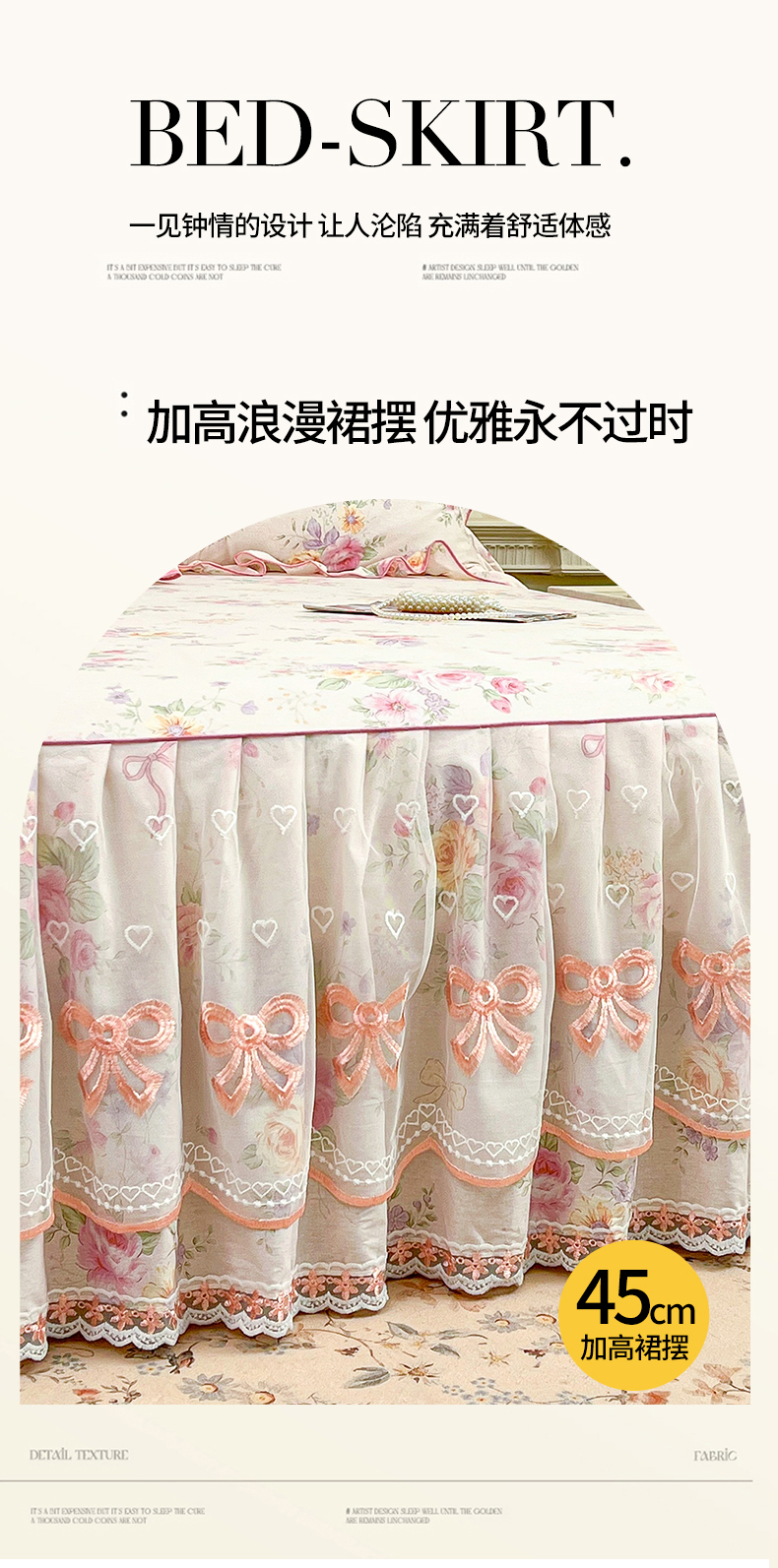 • 91家纺网 家纺一手货源 找家纺 (总)宜凡家纺 2026新款全棉公主风单层床裙三件套,海棠之恋,镜花映月,水苏栀清,玉容昭婉