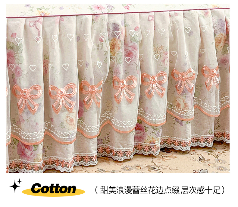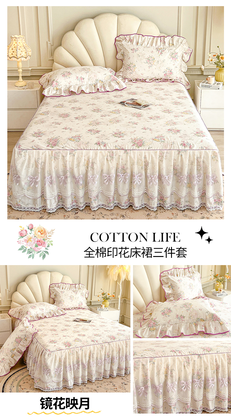 宜凡家纺 2026新款全棉公主风单层床裙三件套 玉容昭婉