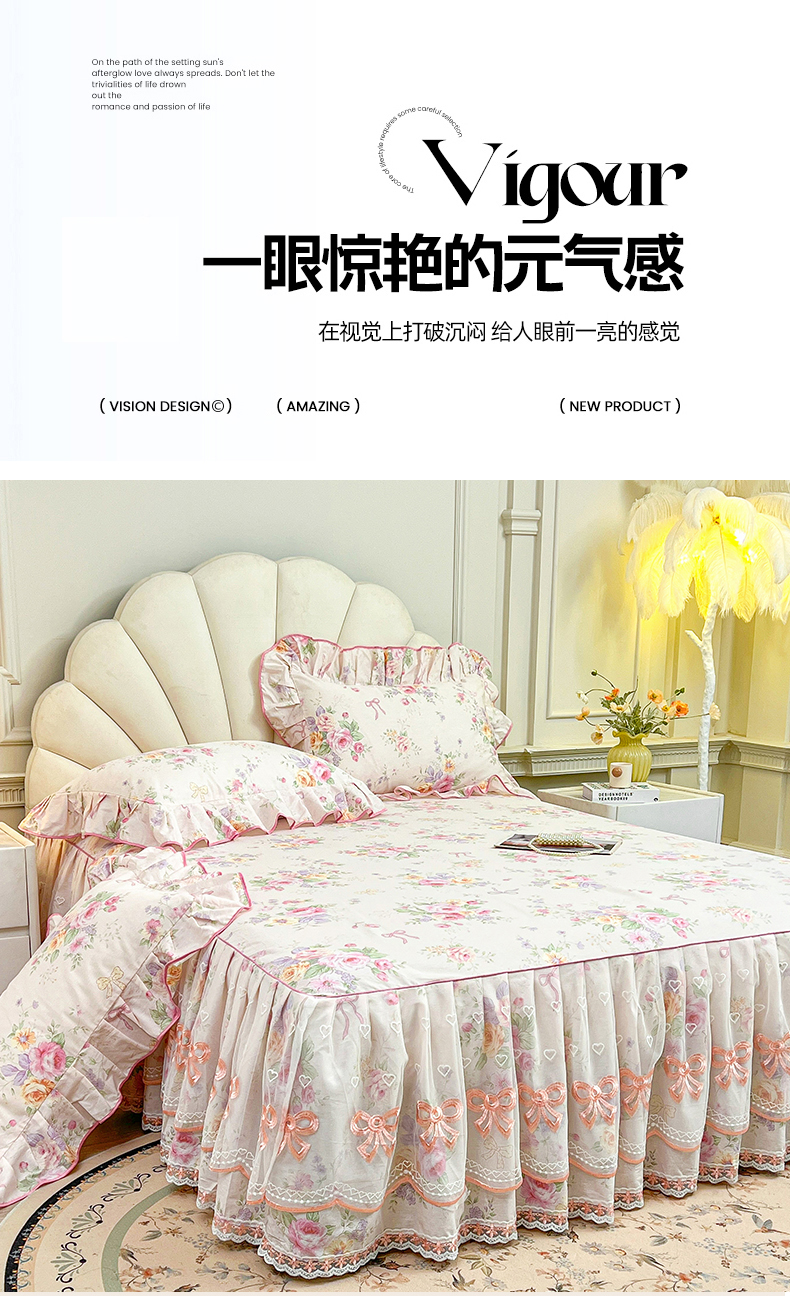 • 91家纺网 家纺一手货源 找家纺 (总)宜凡家纺 2026新款全棉印花公主风夹棉床裙四件套,海棠之恋,镜花映月,水苏栀清,玉容昭婉