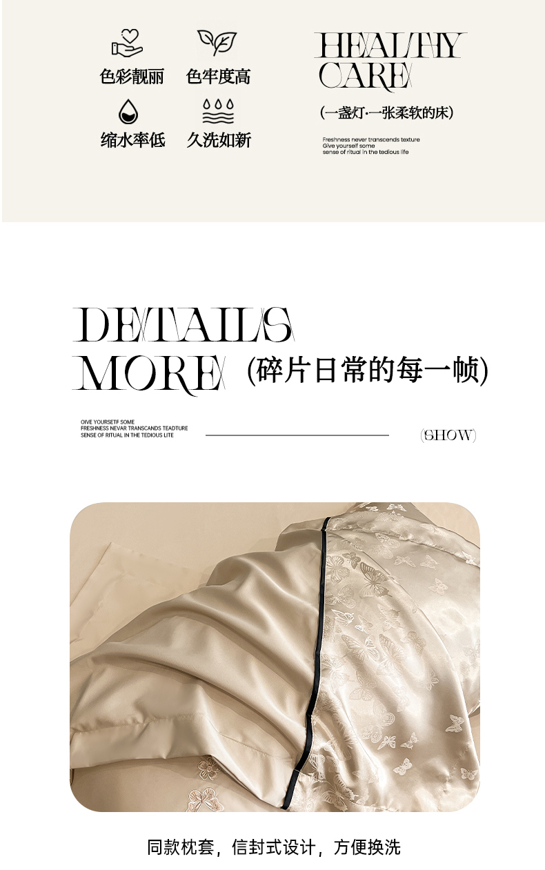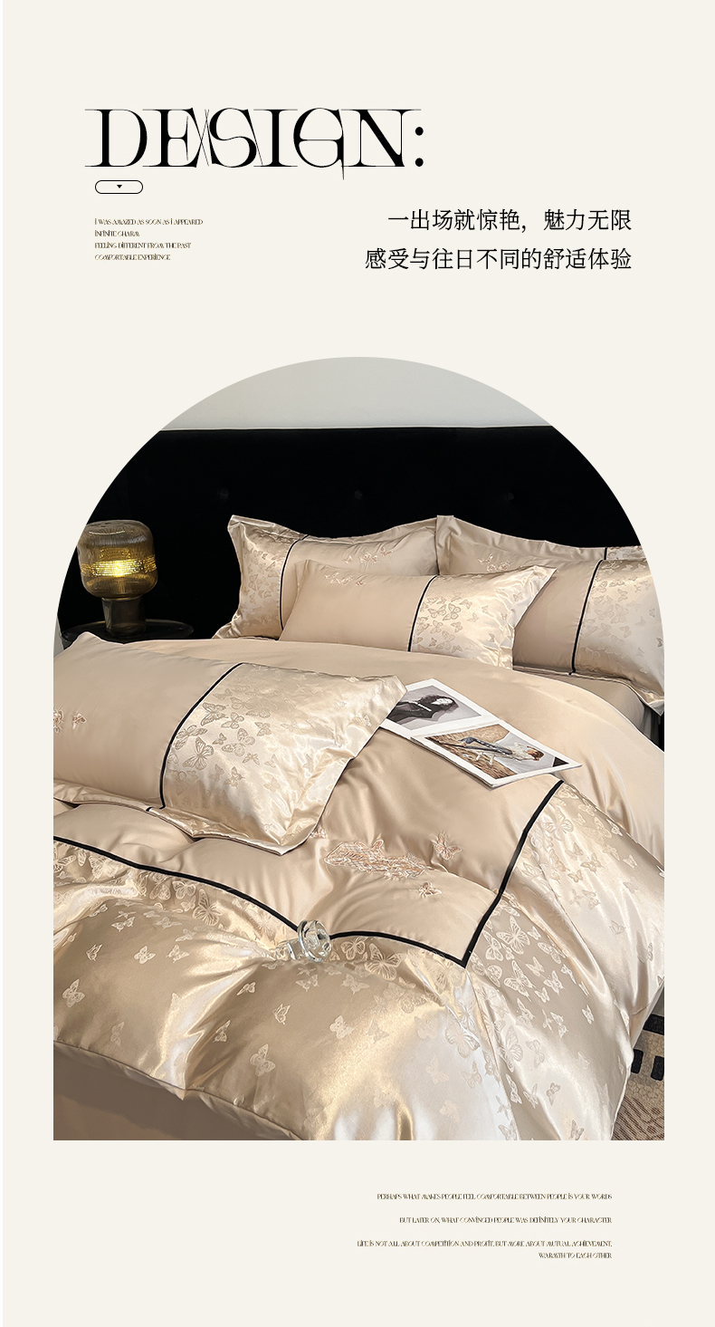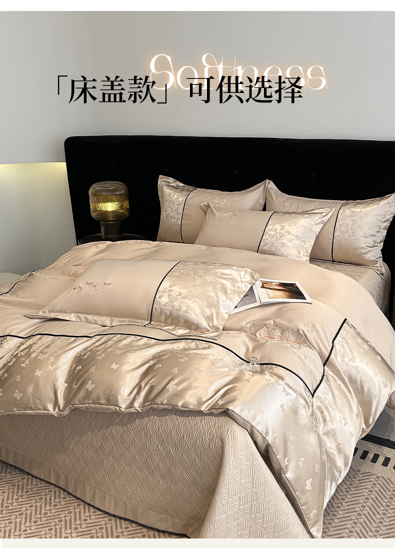 当前位置: 91家纺网 > 商品网购 > 床品套件 > 四件套 > 其它四件套 > 金牛座家纺 2026新款金牛座细斜纹贡缎亮丝提花大拼角刺绣床盖四件套-缇娜系列 缇娜-香槟