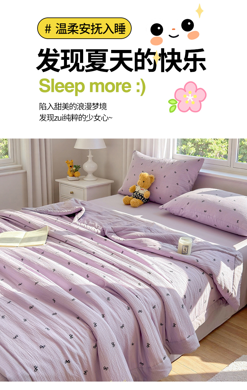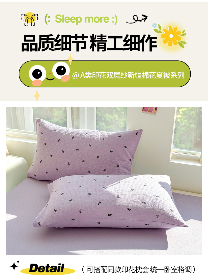 • 91家纺网 家纺一手货源 找家纺 晓时候 2026双层纱印花夏被四件套新疆棉花被可机洗夏凉被空调被夏季被子 蝴蝶结-紫