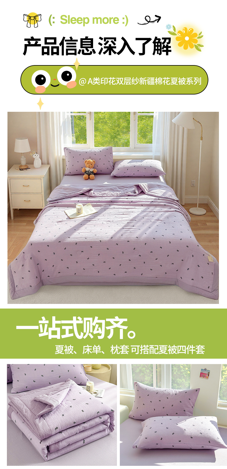 (总)晓时候 2026双层纱印花夏被四件套新疆棉花被可机洗夏凉被空调被夏季被子,安然入夏,萌萌星星人,繁花,奶芙狗,多彩波点,蝴蝶结-紫,花间兔,蓝色泡芙狗,洛神花间,萌宠派对,豆蔻,星星喵,芊芊花语,缤纷水果,甜甜西高地,甜心女孩,小确幸,俏皮狗