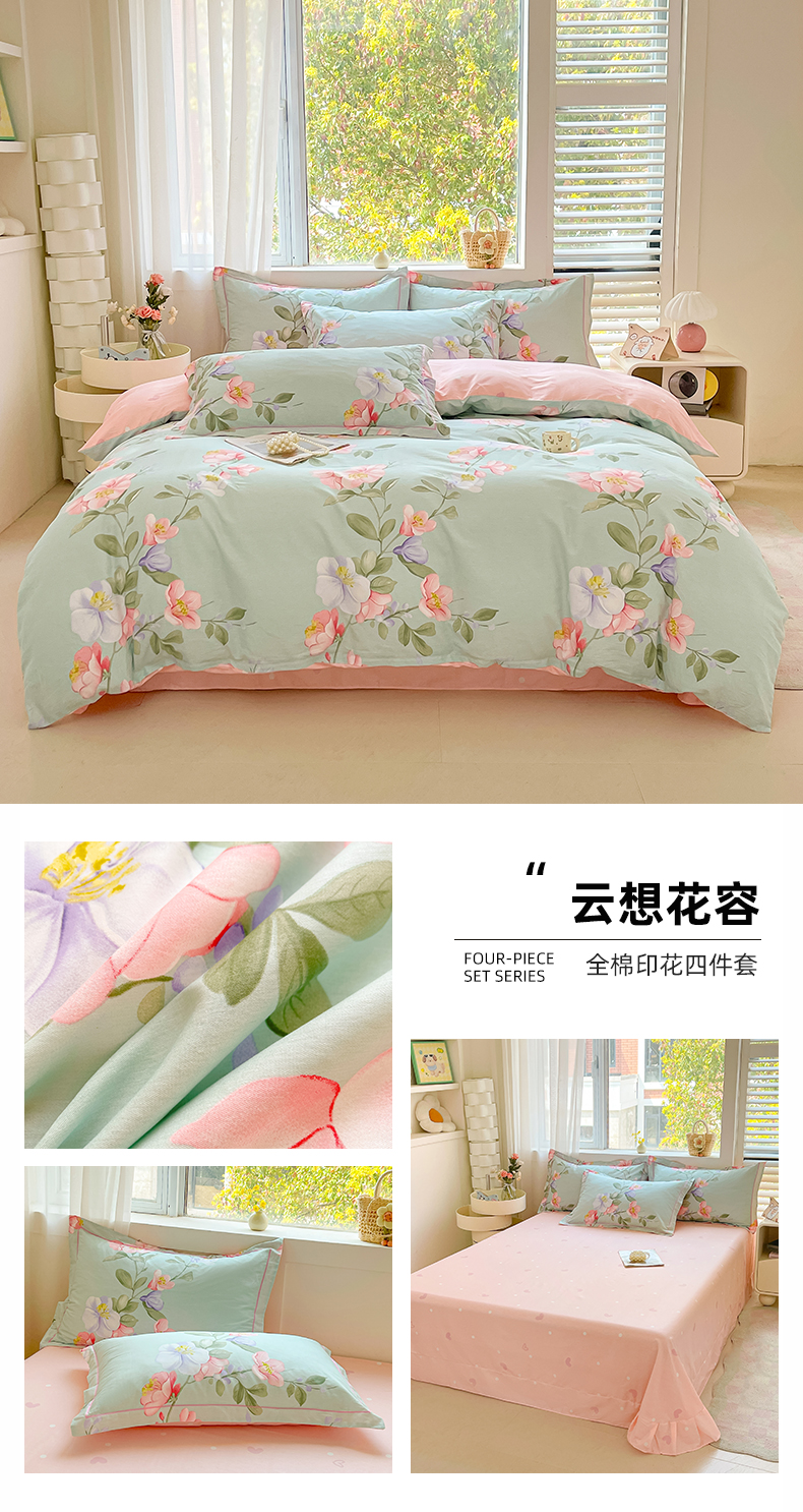 当前位置: 91家纺网 > 商品网购 > 床品套件 > 四件套 > 全棉普通四件套 > 帛美家纺 2026新款全棉纯棉印花四件套 云想花容
