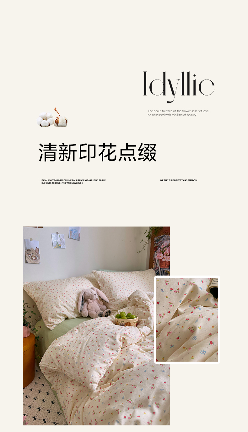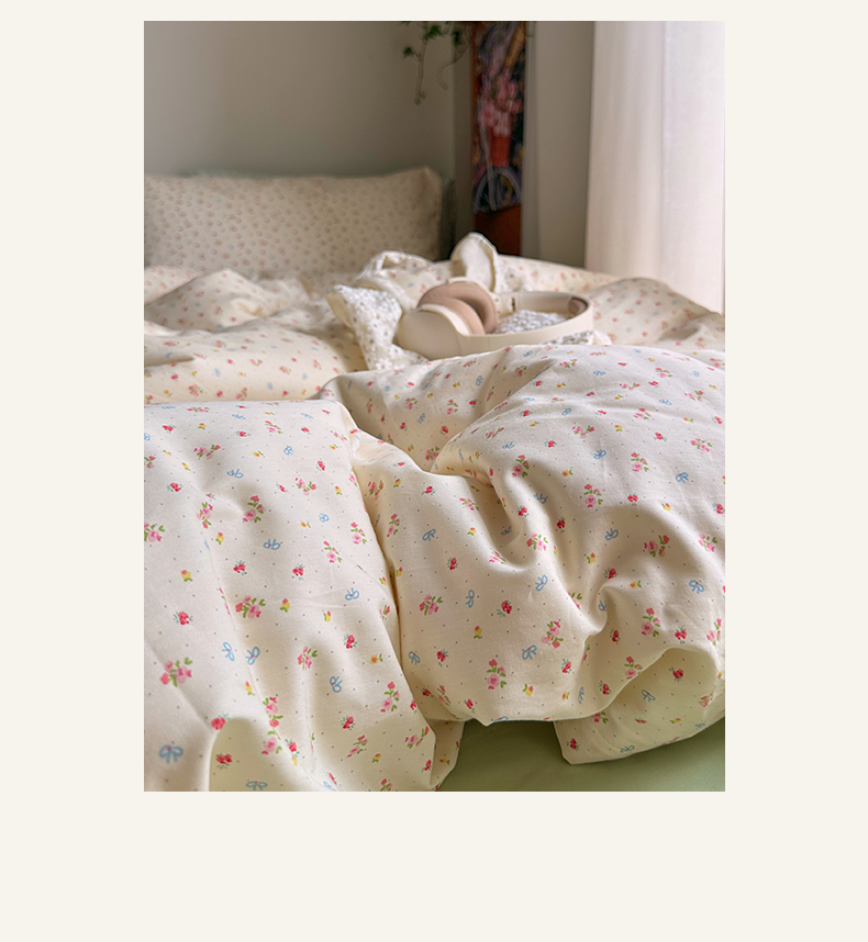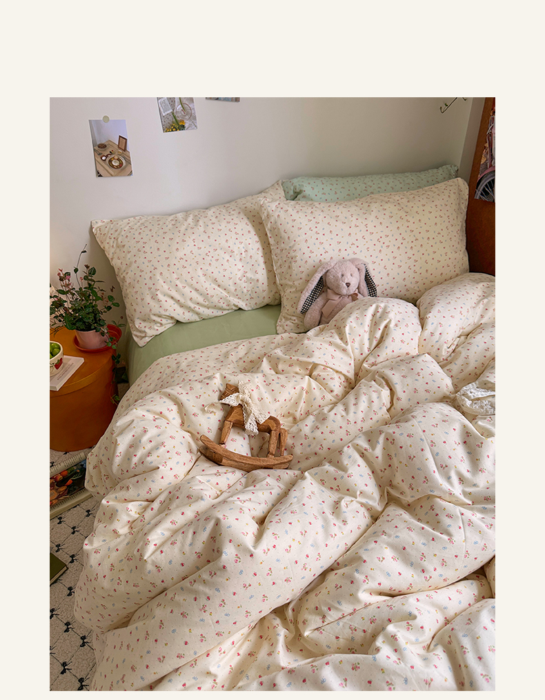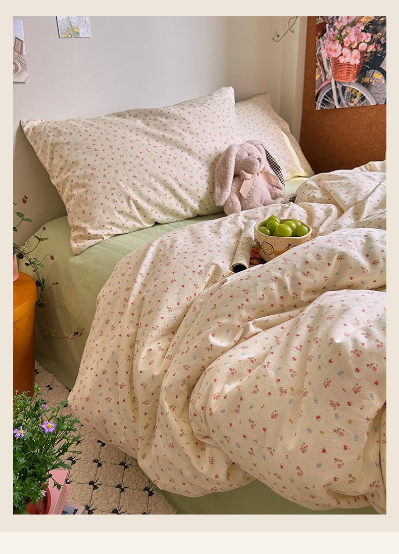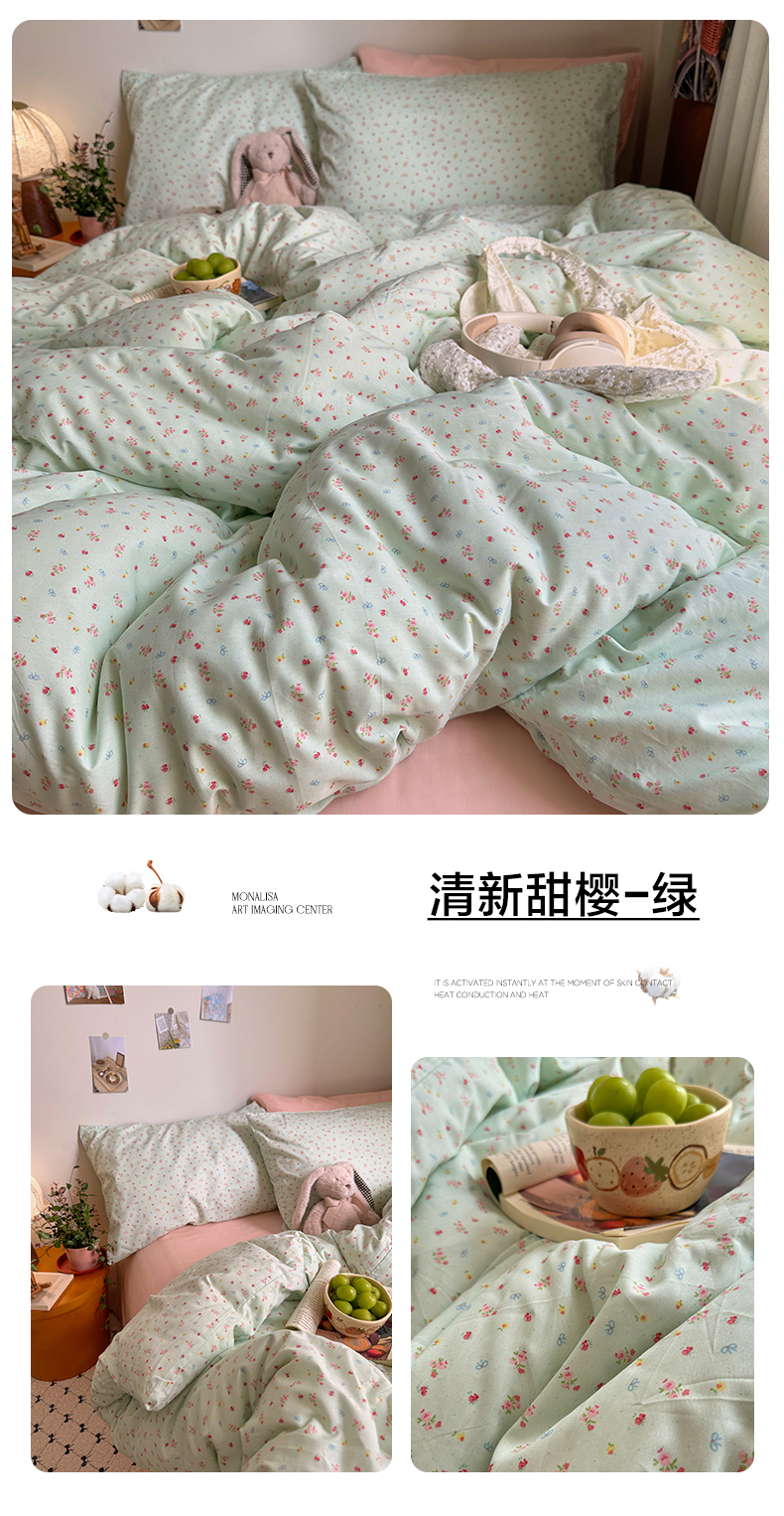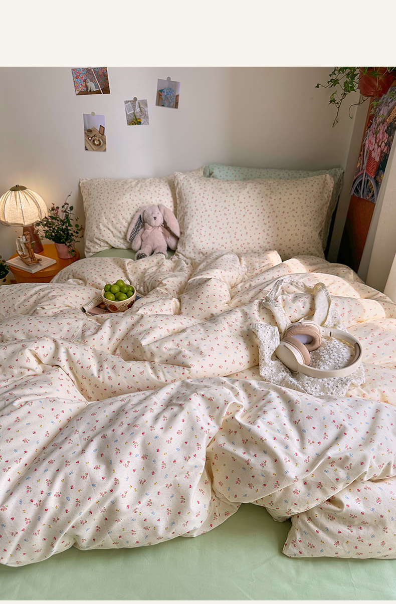 当前位置: 91家纺网 > 商品网购 > 床品套件 > 四件套 > 全棉普通四件套 > 艾咪-Amy ntmy 2026新款博主风清新田园小碎花全棉纯棉四件套-甜樱 清新甜樱-黄