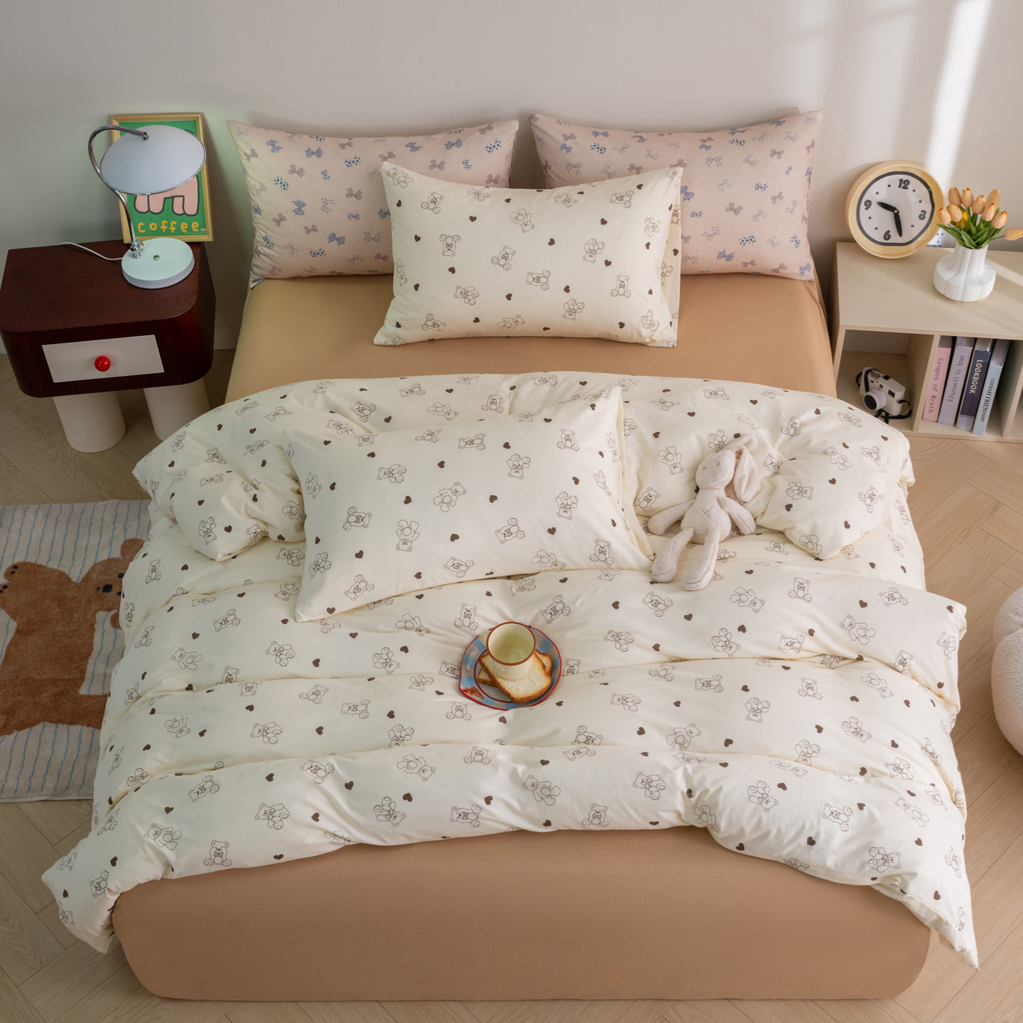 梦可莱家居 2026新款全棉纯棉针织棉印花可爱卡通系列四件套 爱心曲奇