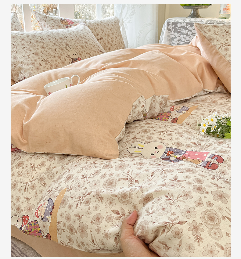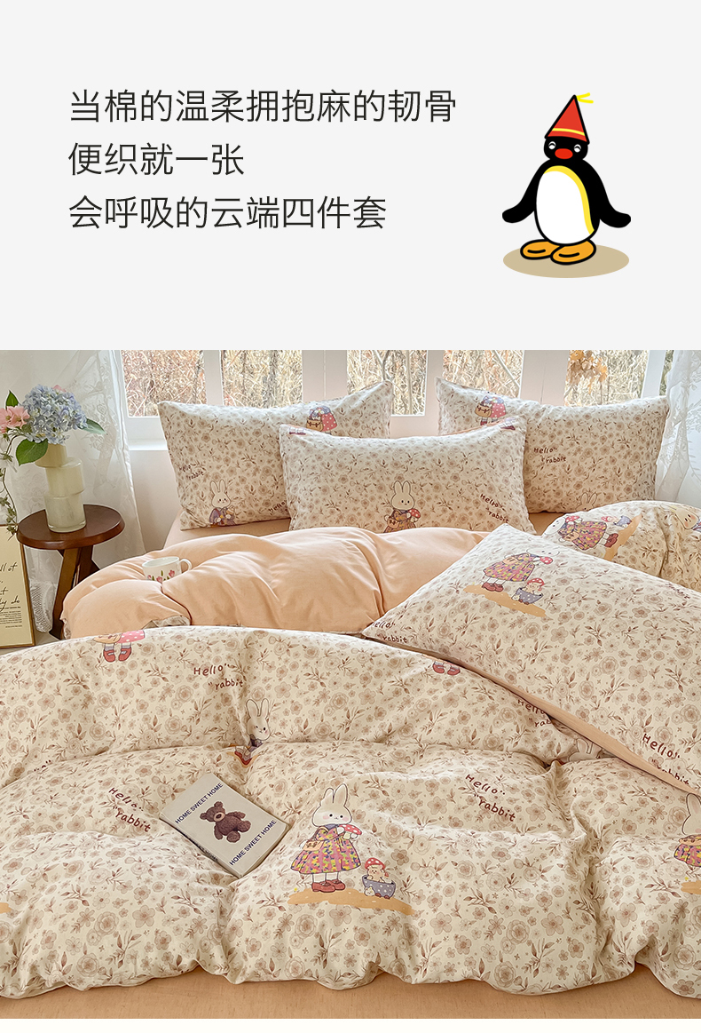 当前位置: 91家纺网 > 商品网购 > 床品套件 > 四件套 > 全棉普通四件套 > 名兮家居 2026新款A类全棉棉麻四件套 采蘑菇