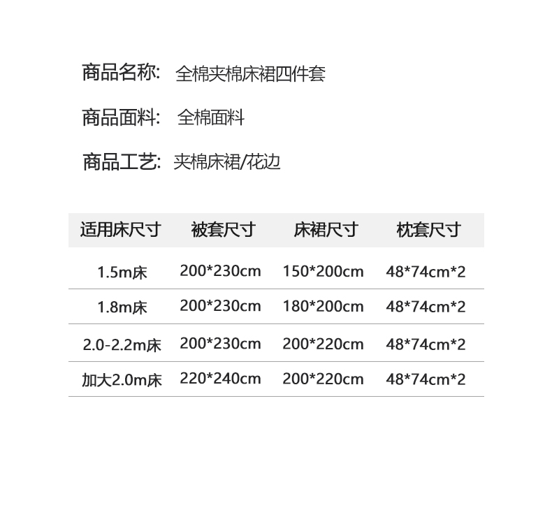 1.5床裙四件套-被套200x230 | ¥230.00 |