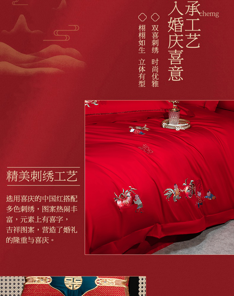 当前位置: 91家纺网 > 商品网购 > 床品套件 > 四件套 > 婚庆四件套 > (总)蒂爵 2026年100支婚庆长绒棉纯棉时尚小红书爆款刺绣婚庆四件套多件套280系列