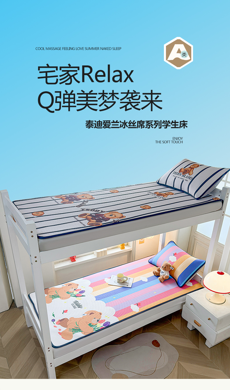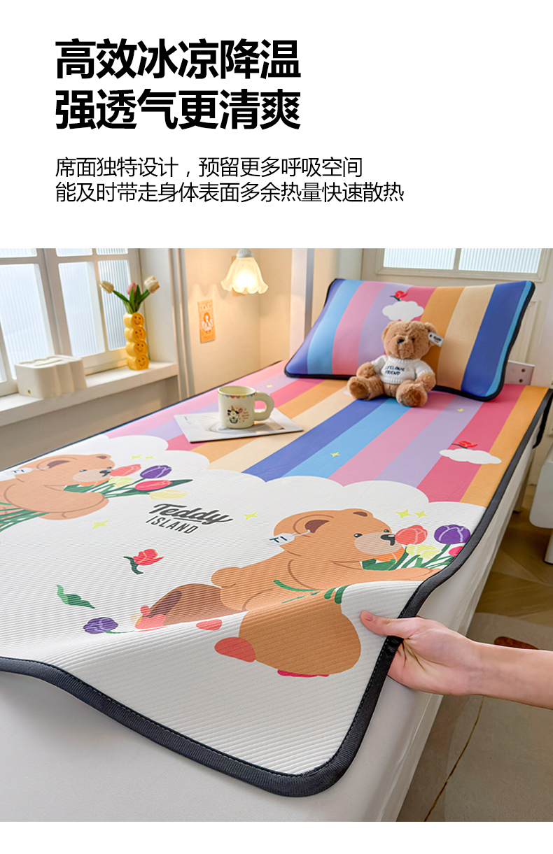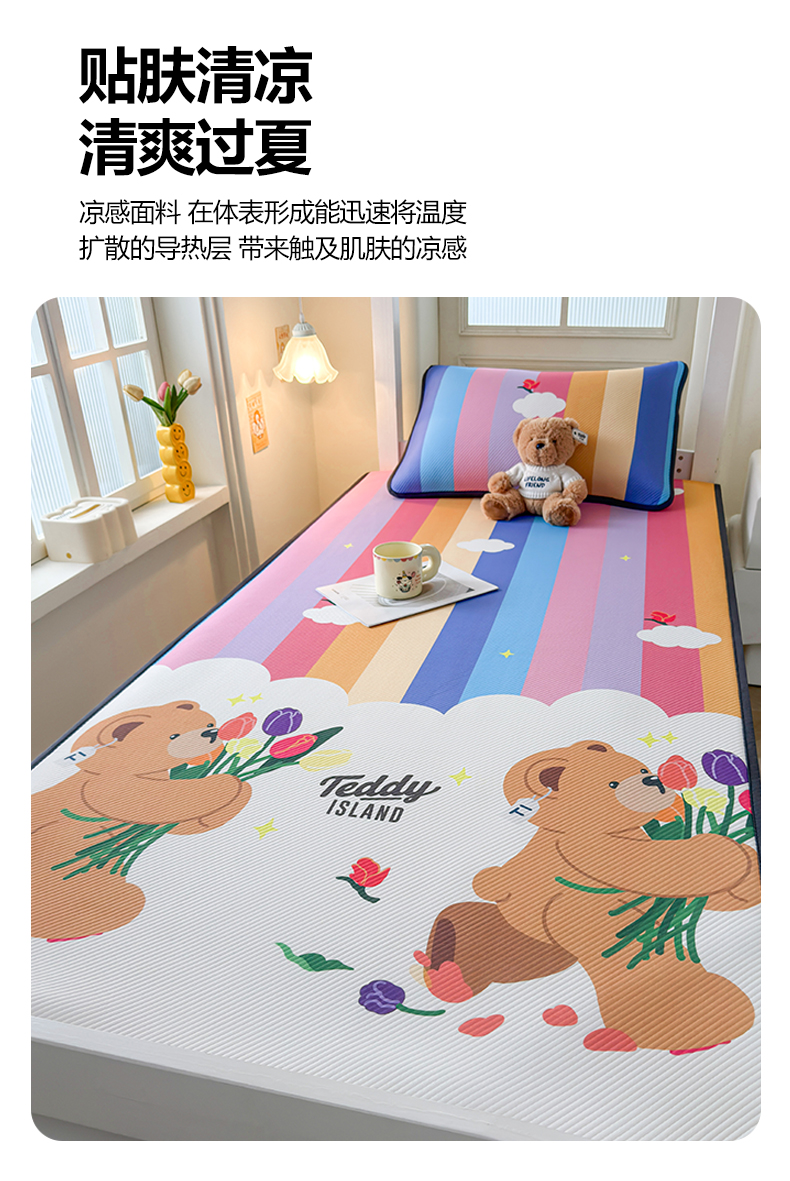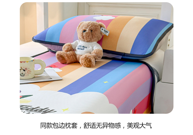 当前位置: 91家纺网 > 商品网购 > 床上用品 > 凉席 > 凉席套件 > 慕木家纺 2026新款A类三明治复合冰丝席泰迪爱兰系列学生款(正版授权)(提供买家秀) 泰迪彩虹