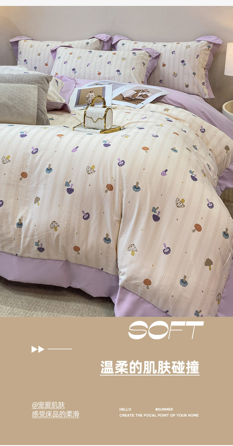 当前位置: 91家纺网 > 商品网购 > 床品套件 > 四件套 > 其它四件套 > 慕木家纺 2026新款A类印花拼角工艺慕斯棉四件套系列(抽空压缩可供跨境)提供买家秀 甜梦熊+粉