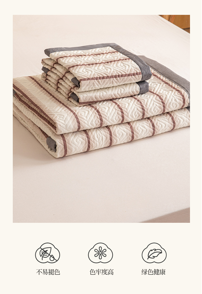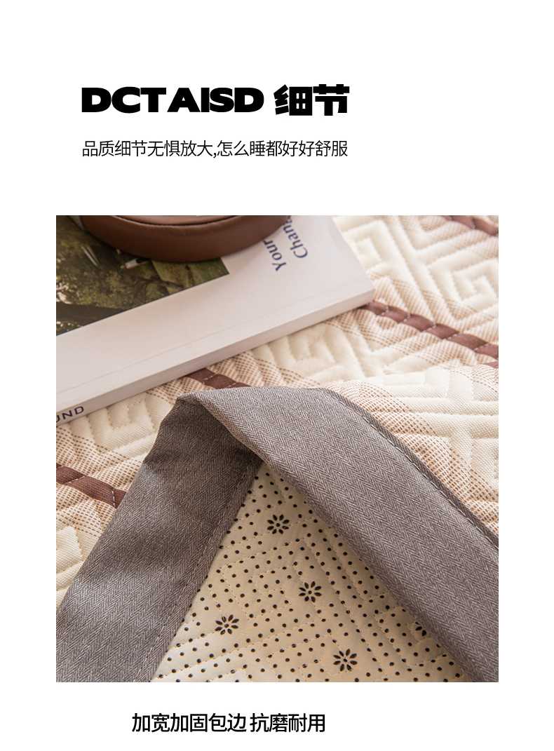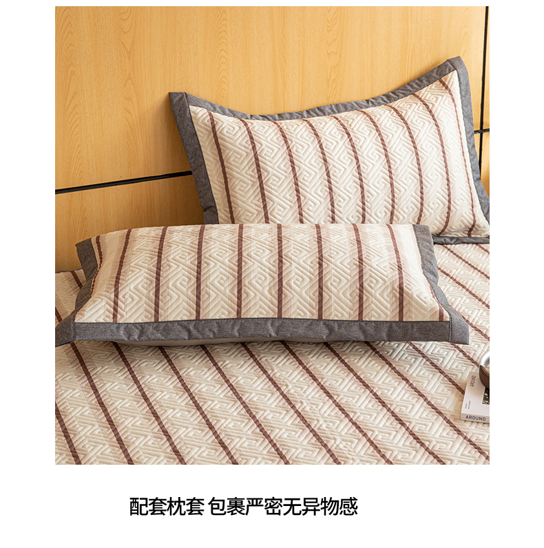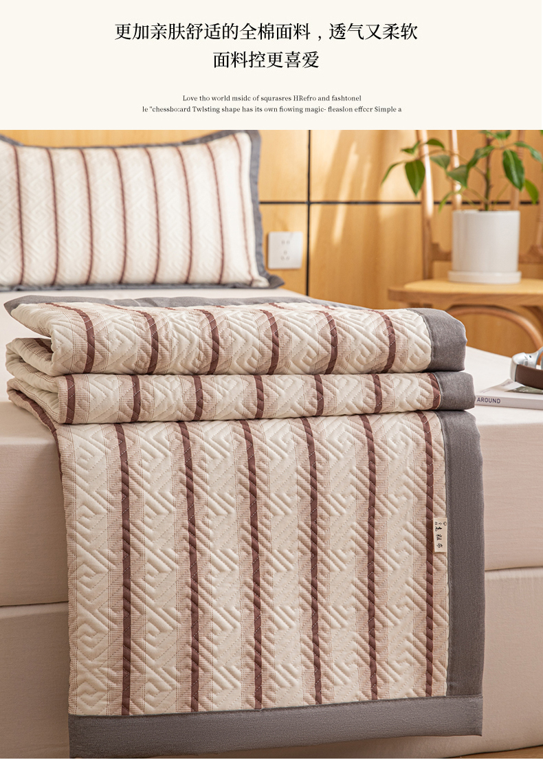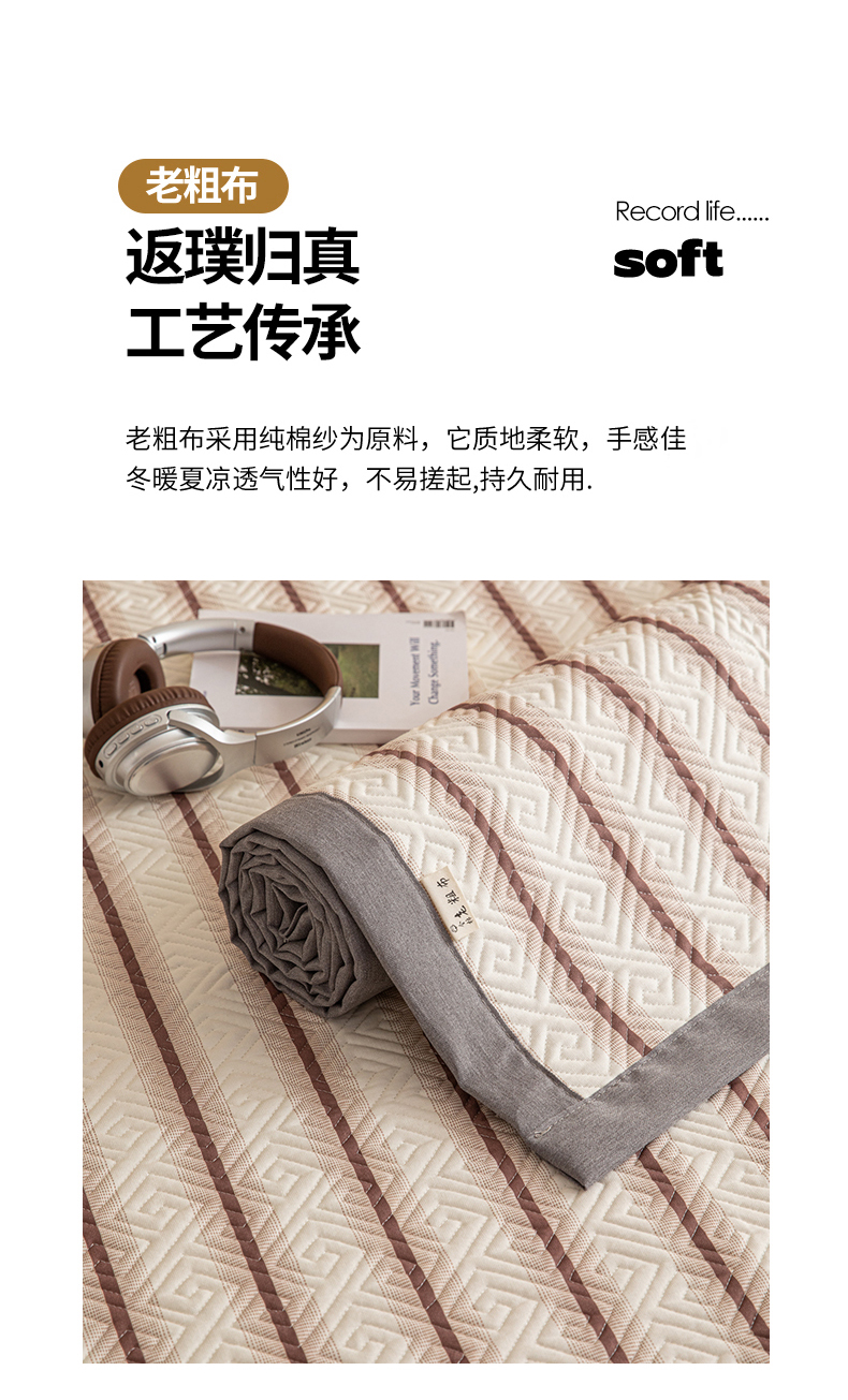 商品名称:女子家纺 2026新款宽边全棉纯棉老粗布绗缝夏季凉席席子 粗条-咖