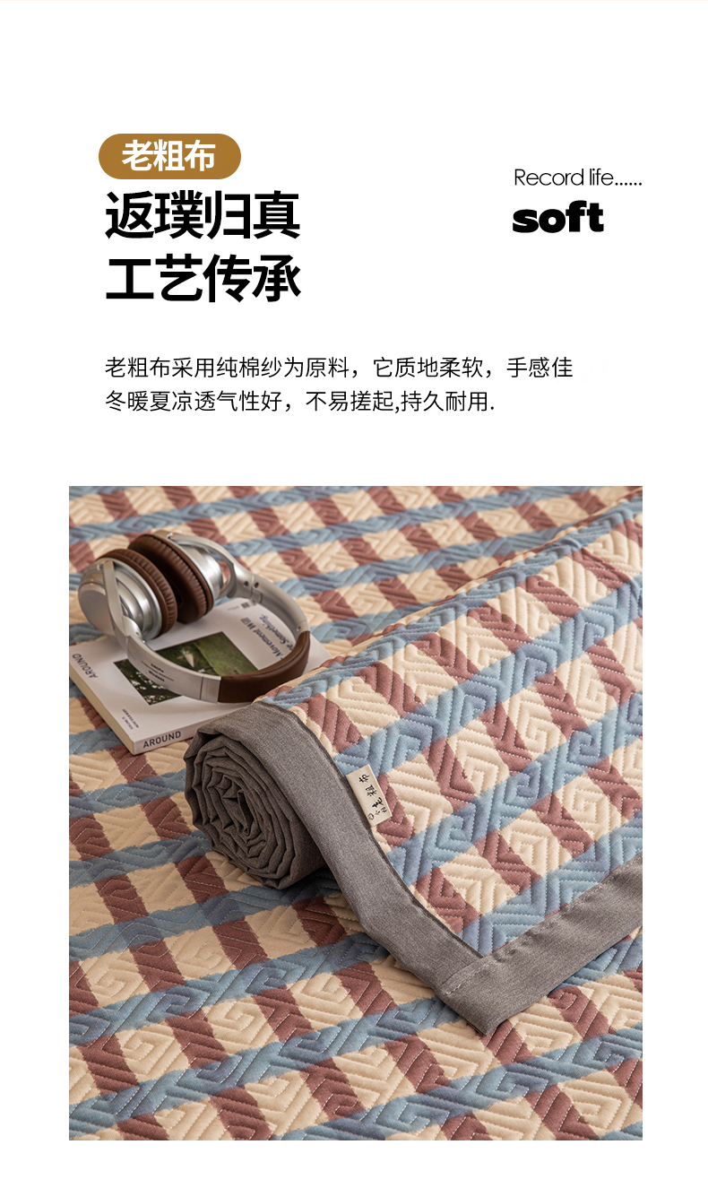 商品名称:女子家纺 2026新款宽边全棉纯棉老粗布绗缝夏季凉席席子 莫兰格