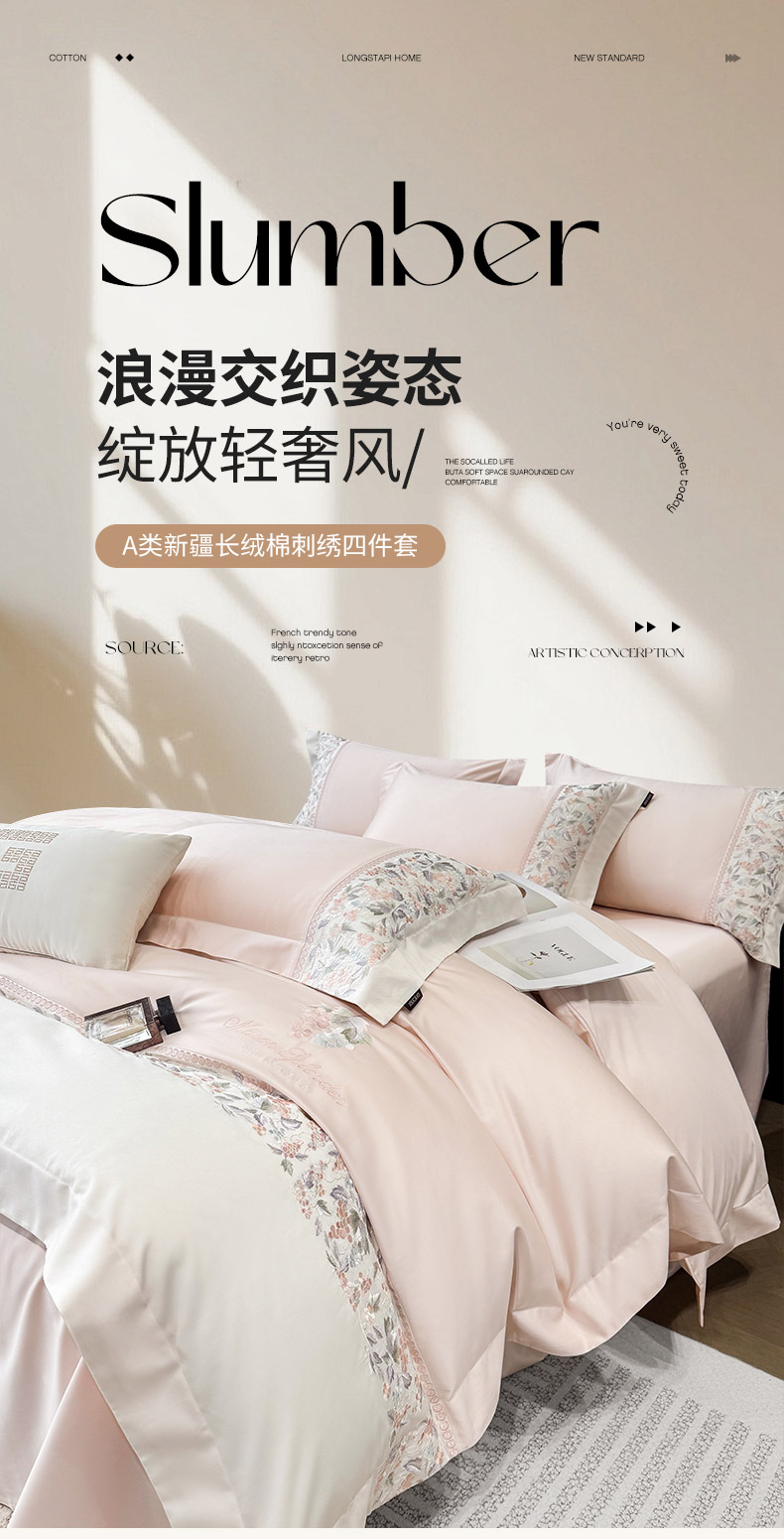 当前位置: 91家纺网 > 商品网购 > 床品套件 > 四件套 > 长绒棉四件套 > 2026新品100支贡缎长绒棉纯棉四件套全棉重工刺绣被套床单床笠新品四季款轻奢风 琉璃花语-颜粉