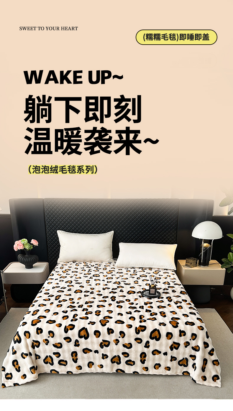 欧妮家纺 2025新款亲肤舒适泡泡绒毛毯 樱桃熊