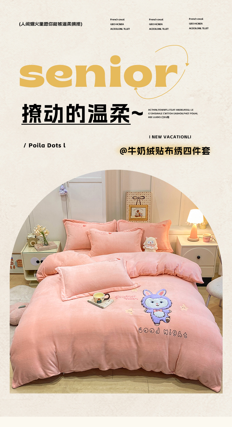 当前位置: 91家纺网 > 商品网购 > 床品套件 > 四件套 > 牛奶绒四件套 > 欧妮家纺 2025新款牛奶绒贴布绣四件套 小兔-蓝