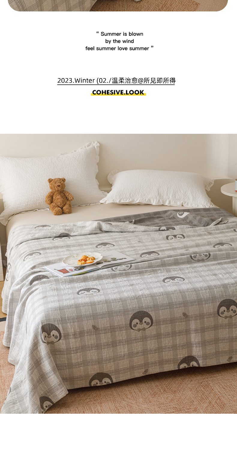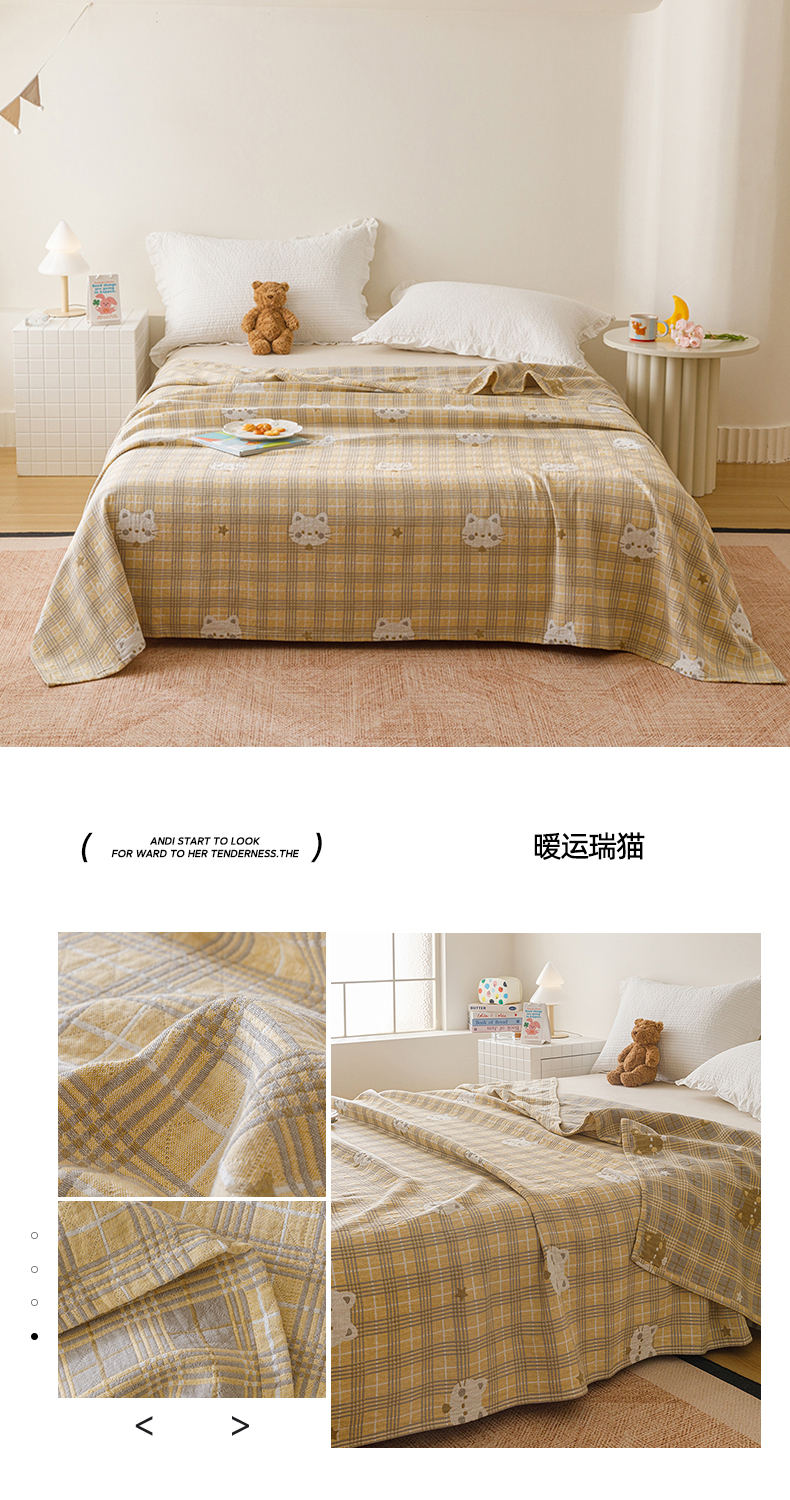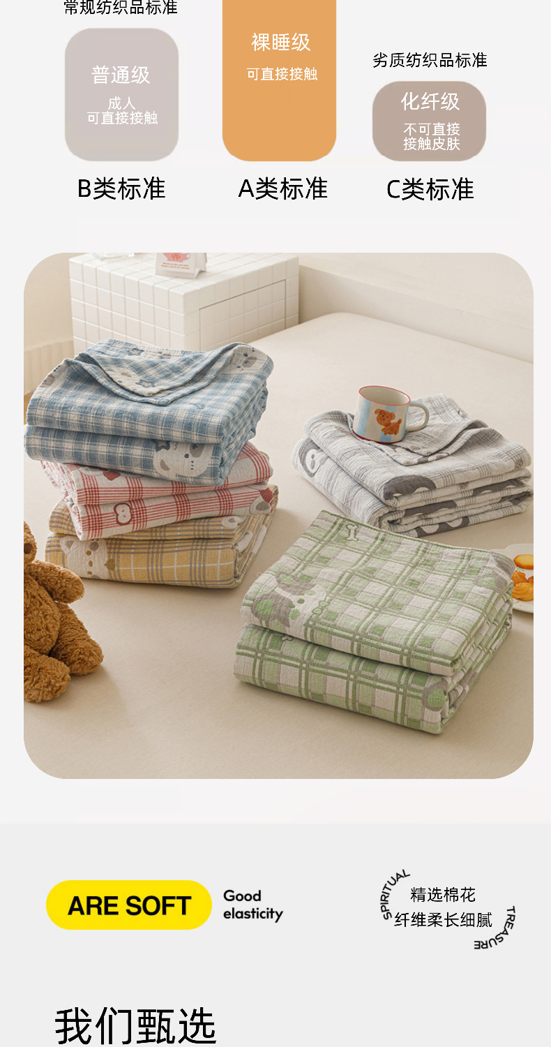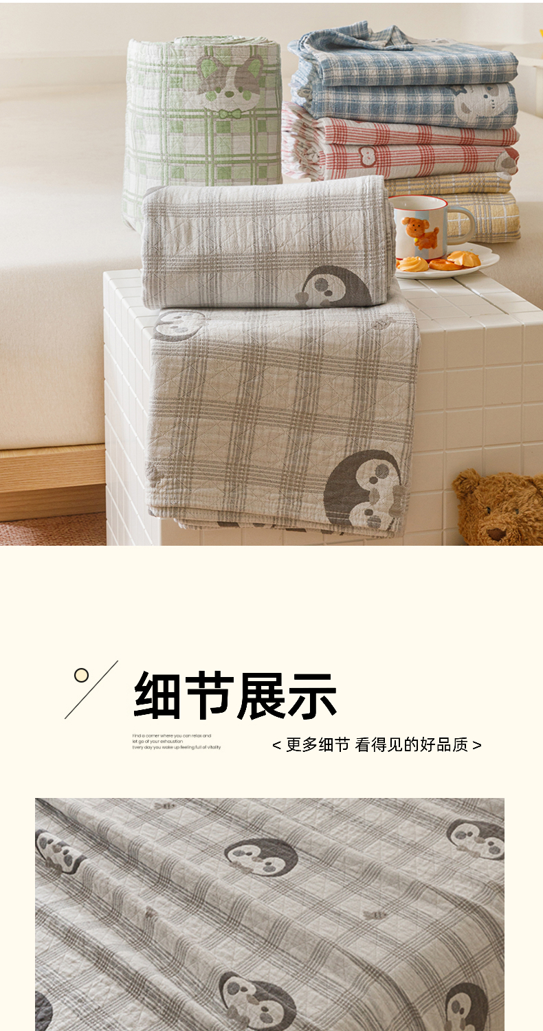 (总)悦然毛巾被 2026新款色织水洗棉盖毯安心棉床盖全棉纱布毛巾被夏被夏凉被空调被,组合图仅供展示不可下单,蓝格萌马,蓝格小狗,蓝格心语,蓝格星芒,蓝格熊语