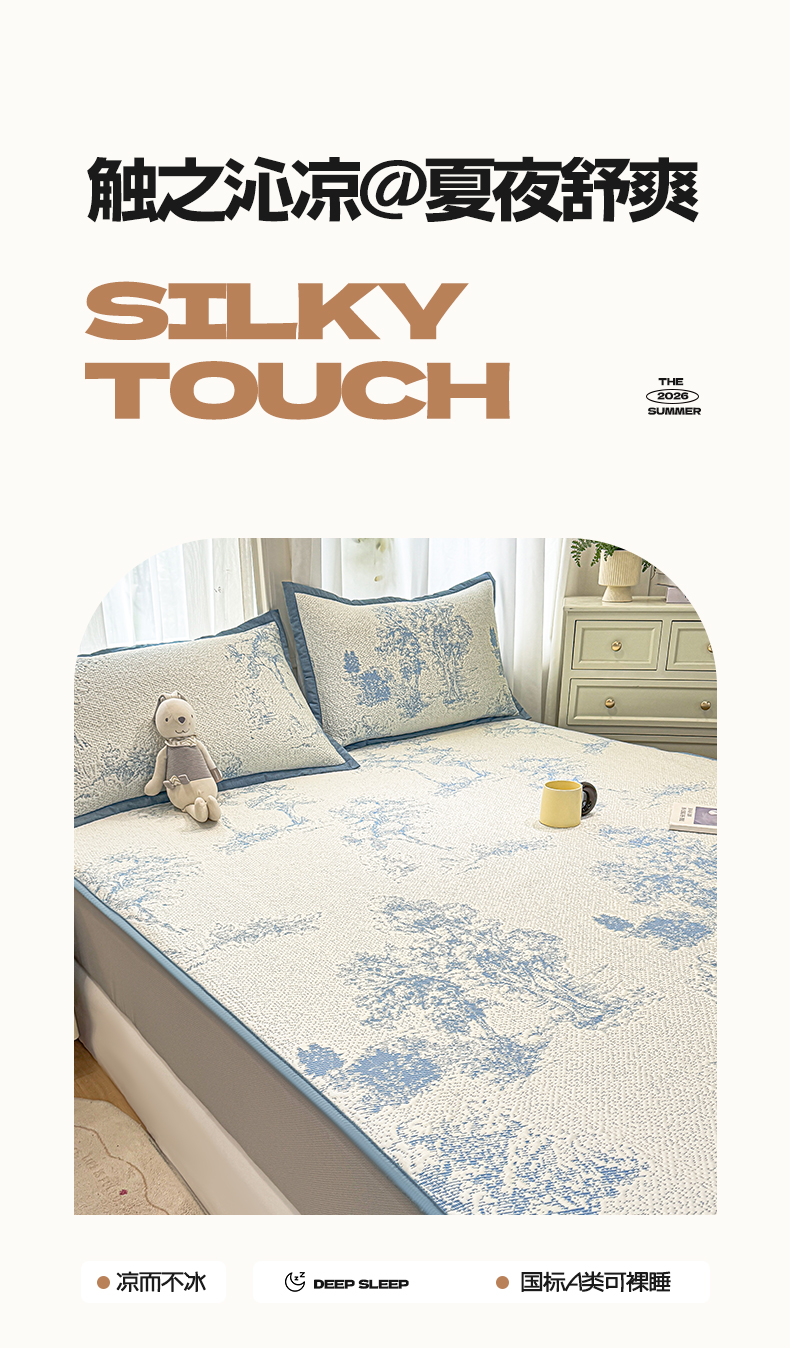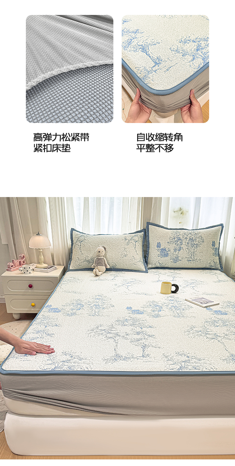 帅露家纺 2026新款A类PE中分子提花软凉席席子 床笠款-迷雾森林