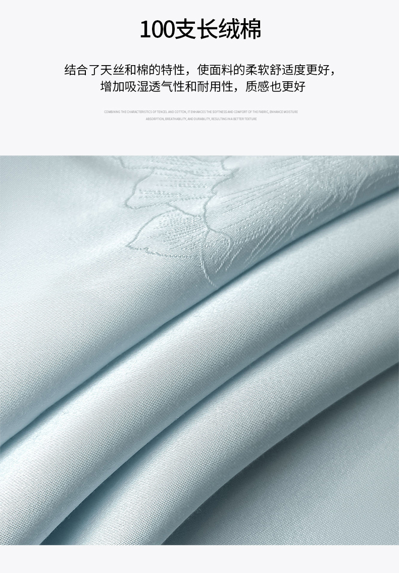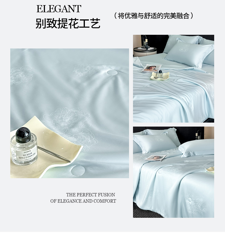 • 91家纺网 家纺一手货源 找家纺 (总)新方向 2026A类20%蚕丝提花天丝棉夏被四件套 65%60s兰精天丝 35%100支长绒棉-花影风格二,花影-山茶粉,花影-微光蓝