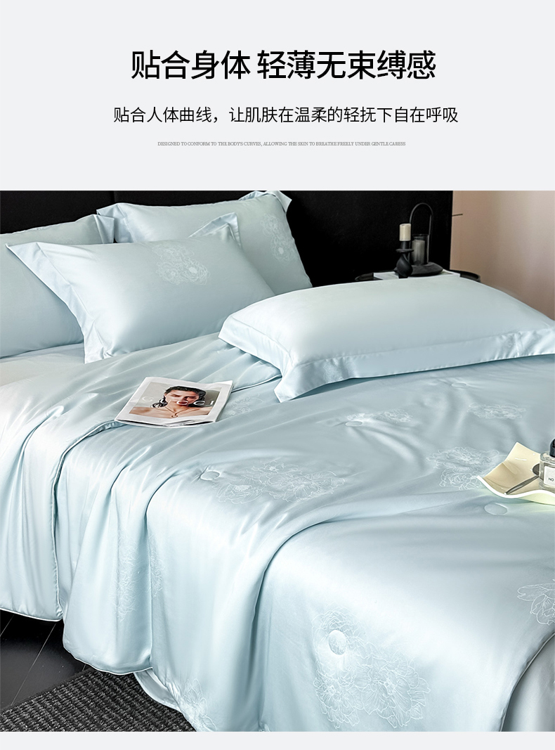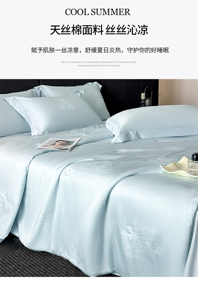 (总)新方向 2026刺绣A类20%蚕丝天丝棉夏被四件套 65%60s兰精天丝 35%100支长绒棉-星耀,星耀-山茶粉,星耀-微光蓝