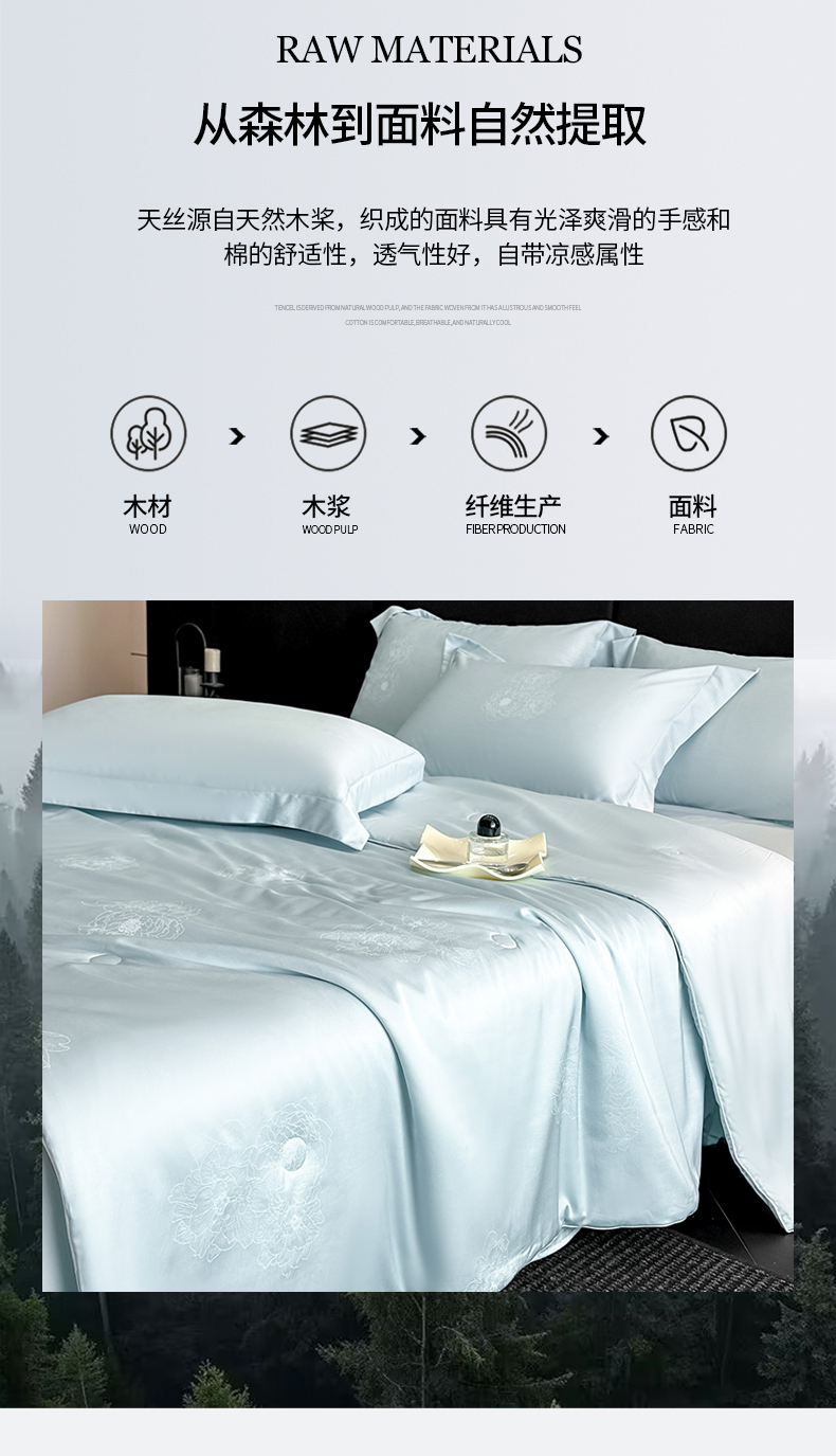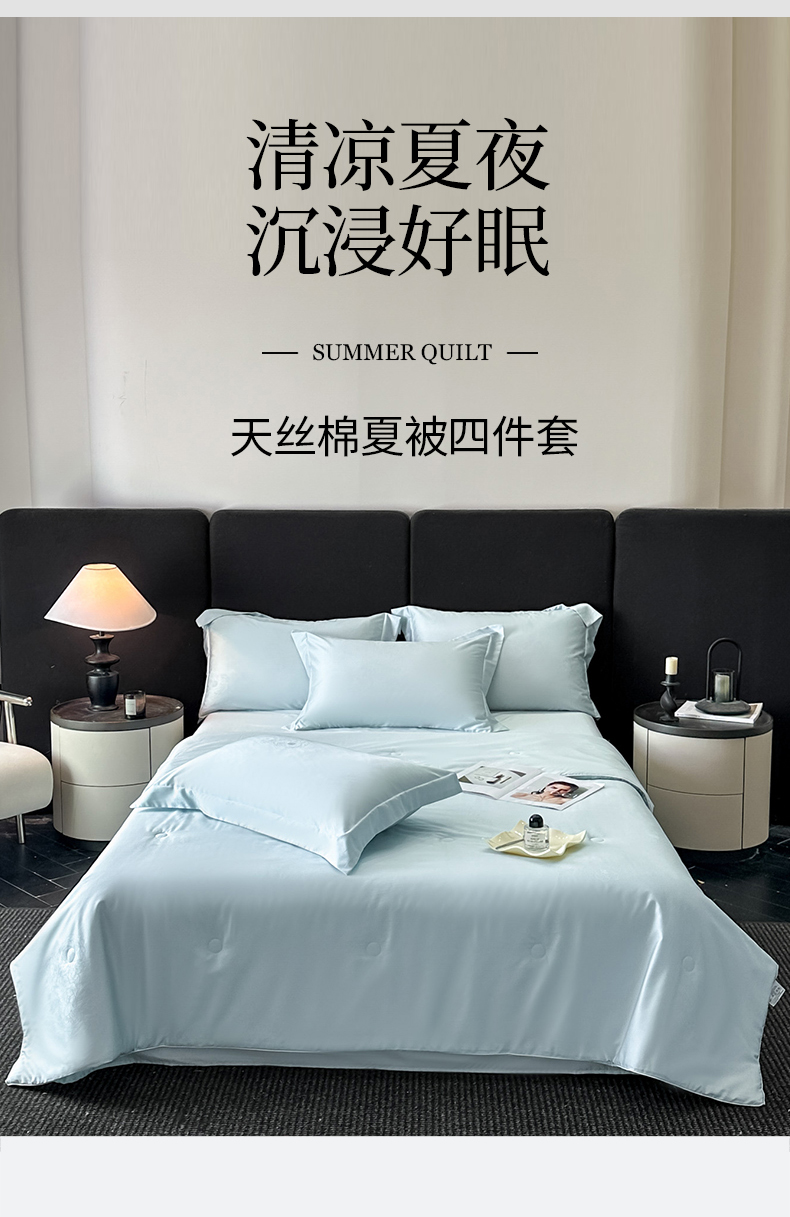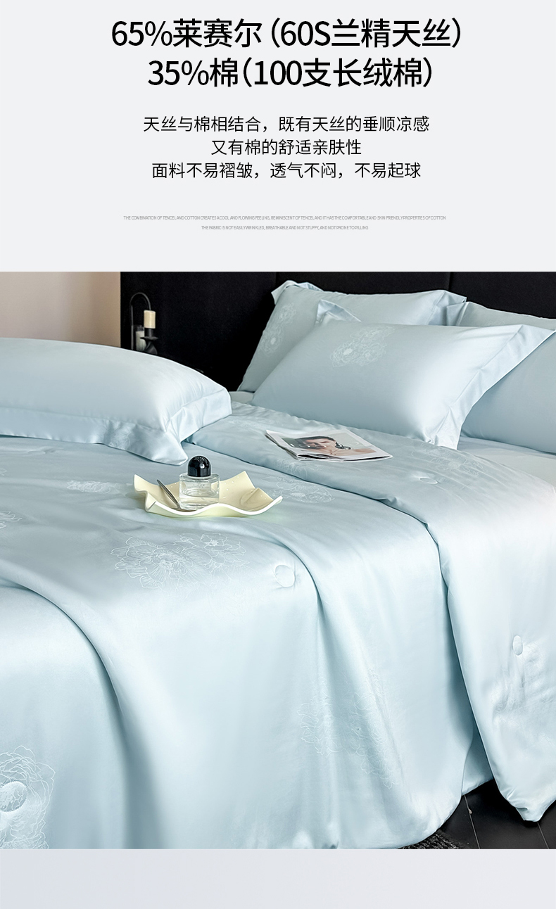 • 91家纺网 家纺一手货源 找家纺 (总)新方向 2026刺绣A类20%蚕丝天丝棉夏被四件套 65%60s兰精天丝 35%100支长绒棉-星耀,星耀-山茶粉,星耀-微光蓝
