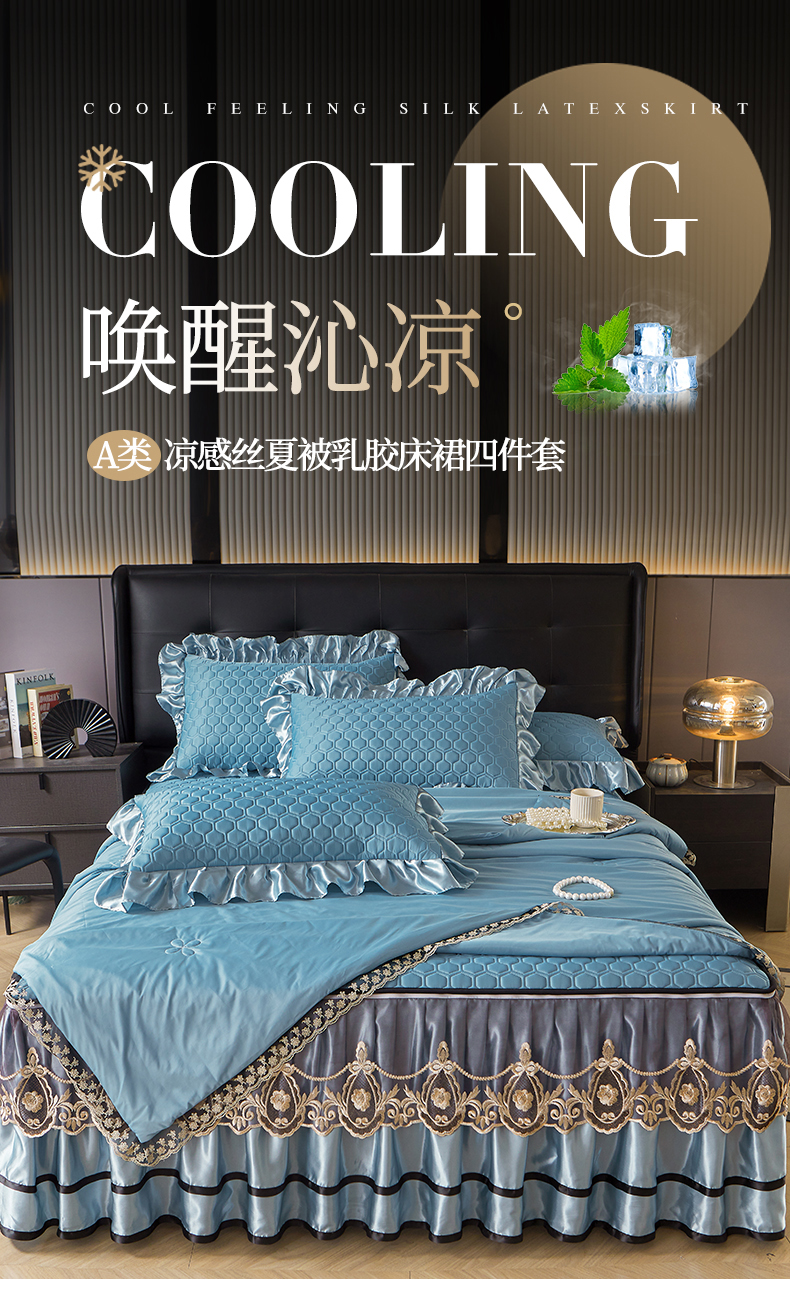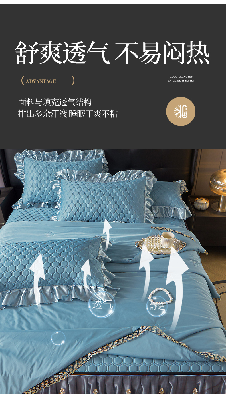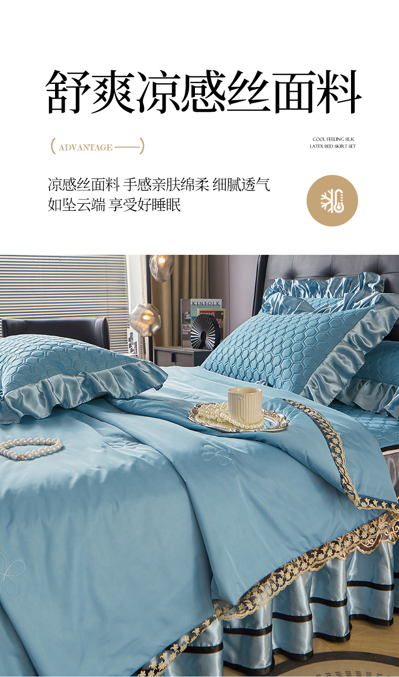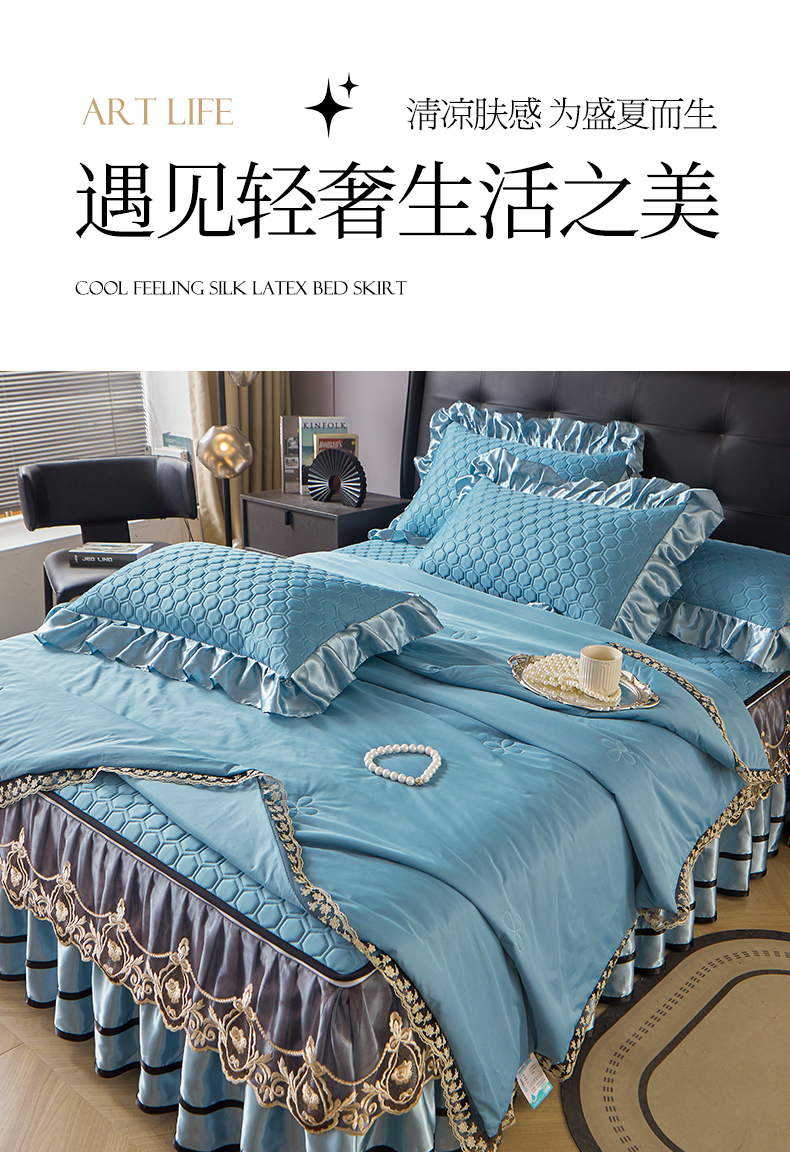 好儿喜家纺 2026新款夏季夏被四件套乳胶床裙款-雅颂系列 雅颂-宾利蓝