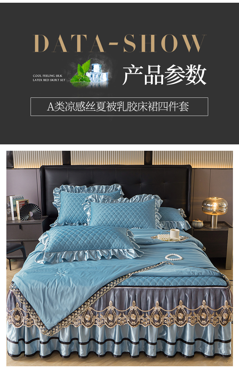 商品名称:好儿喜家纺 2026新款夏季夏被四件套乳胶床裙款-雅颂系列 雅颂-宾利蓝